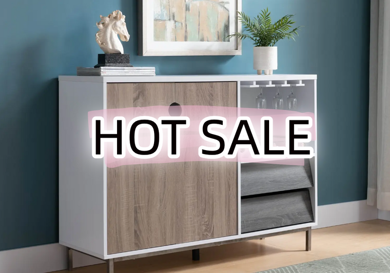 Farmhouse Storage Cabinet with Drawer and Adjustable Shelf, White Kitchen Cabinet with Walnut Countertop, Modern Coffee Bar Console Cabinet for Kitchen, Dining Room, Bathroom, Entryway