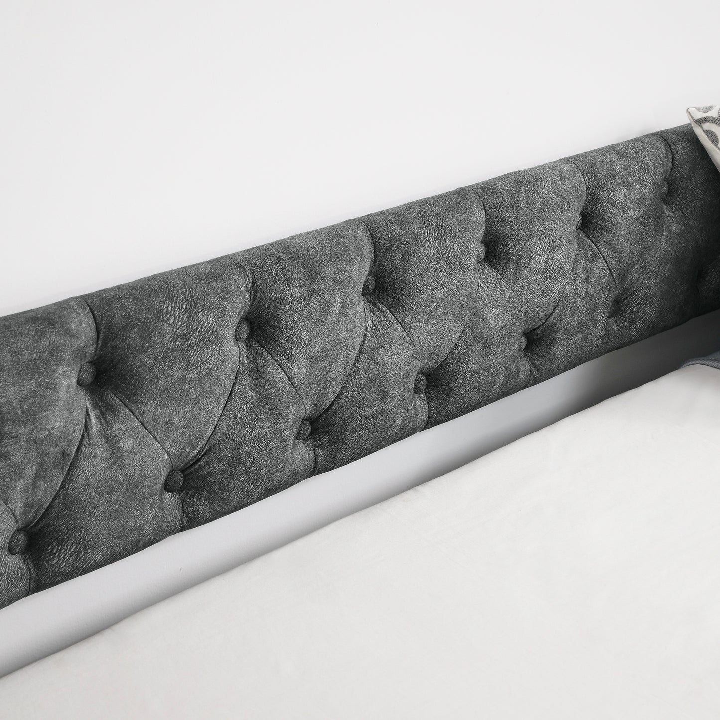 - [Comfortable Experience] Foam padded sides and back that provide optimal back support and comfort.This full-size daybed provides you with a great seating experience that ergonomically supports your back and arms. Meanwhile gorgeous soft fabric ensures you can keep cool for extended periods.