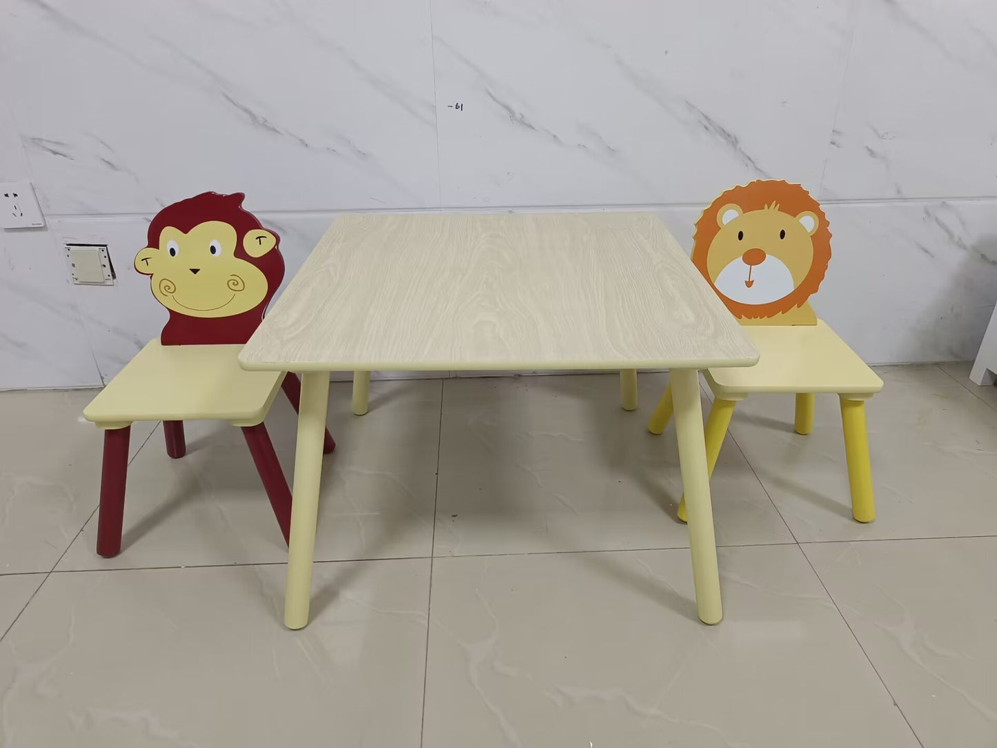 Kids Table and 2 Chairs Set, 3 Pieces Toddler Table and Chair Set, Wooden Activity Play Table Set (Lion&Monkey)
