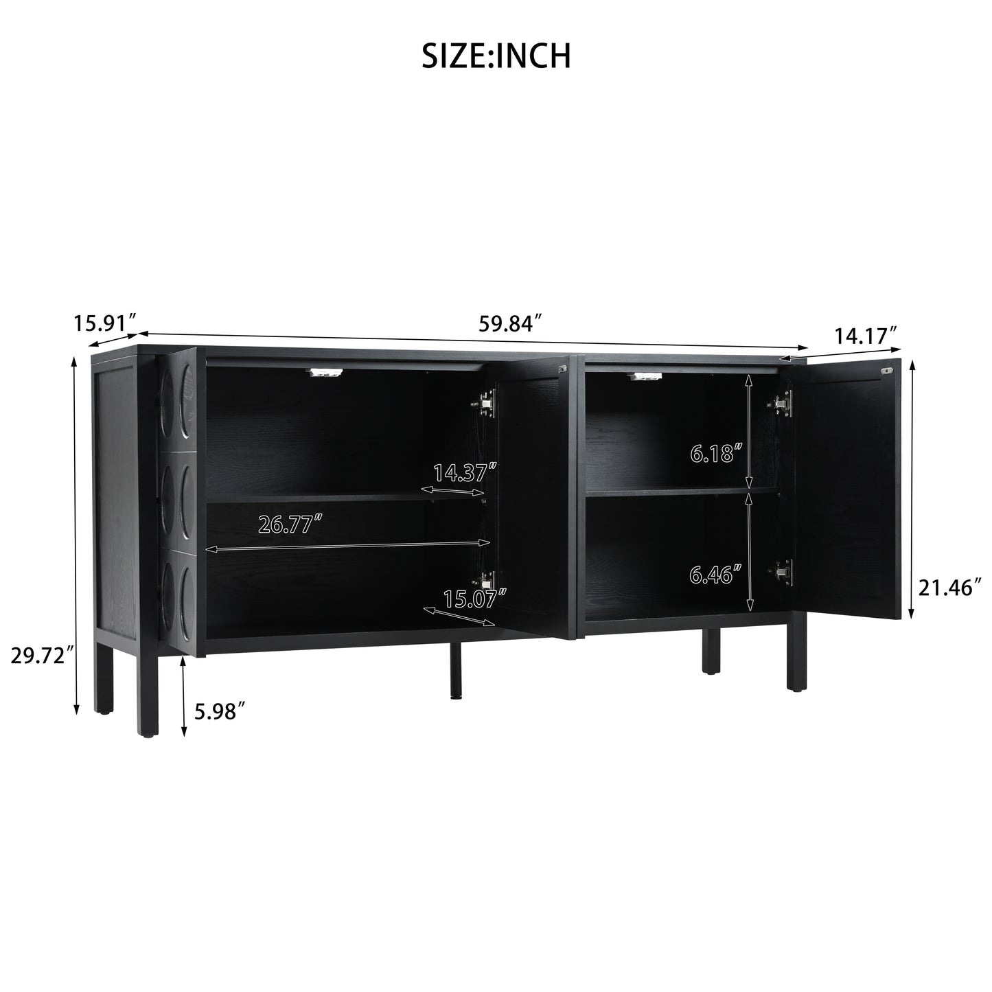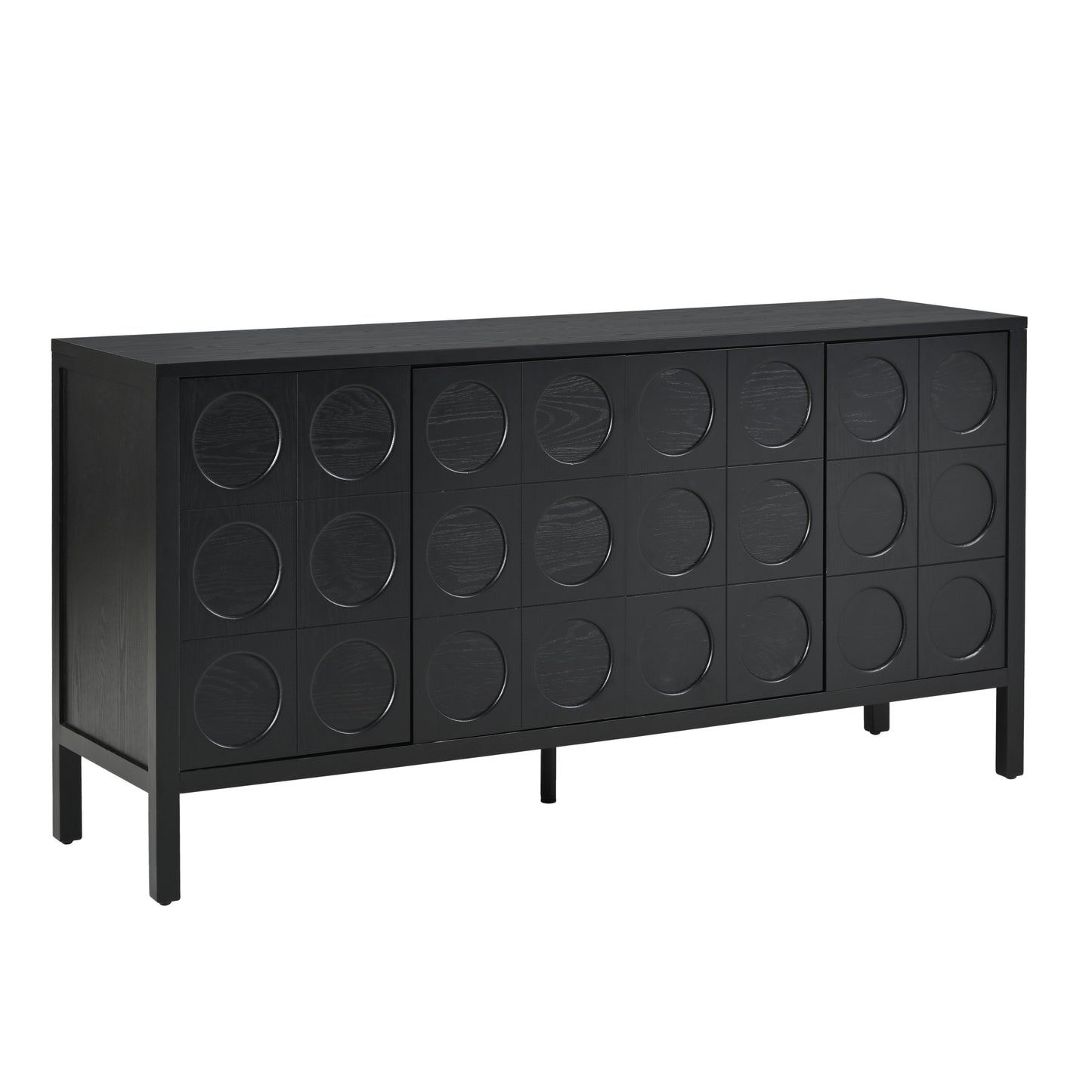 - [Unique Geometric Circle Door Design]:The cabinet door adopts a geometric circular shape with concave and convex features, applying the aesthetic design of geometric symmetry, like a wall of black vinyl records. this sideboard seamlessly fits into any decor style, from minimalist to eclectic. With ample storage, it combines functionality with aesthetic appeal, making it a standout piece in any room.
