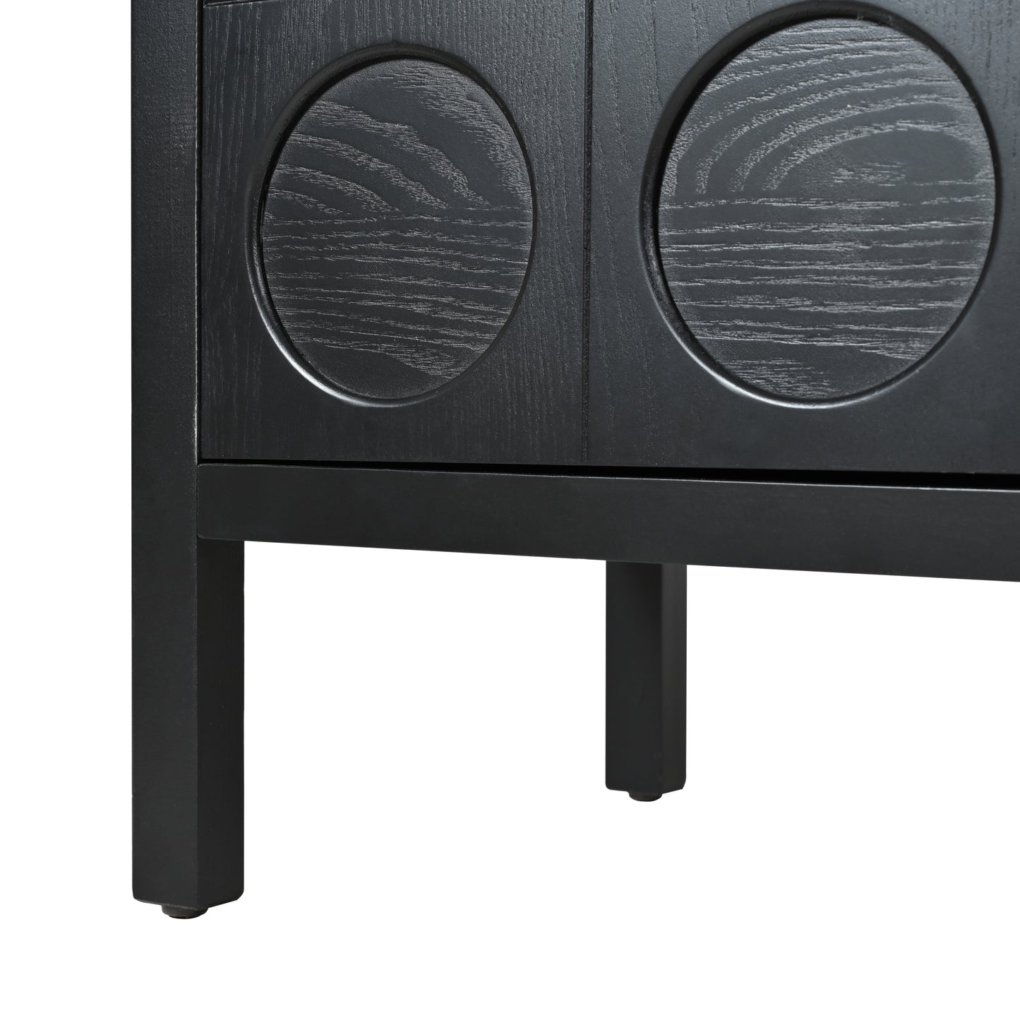 Stylish Storage Cabinet Sideboard Wooden Cabinet with Unique Geometric Circle Door Design,Suitable for Study Rooms ,Entrance and Living Room(Black)