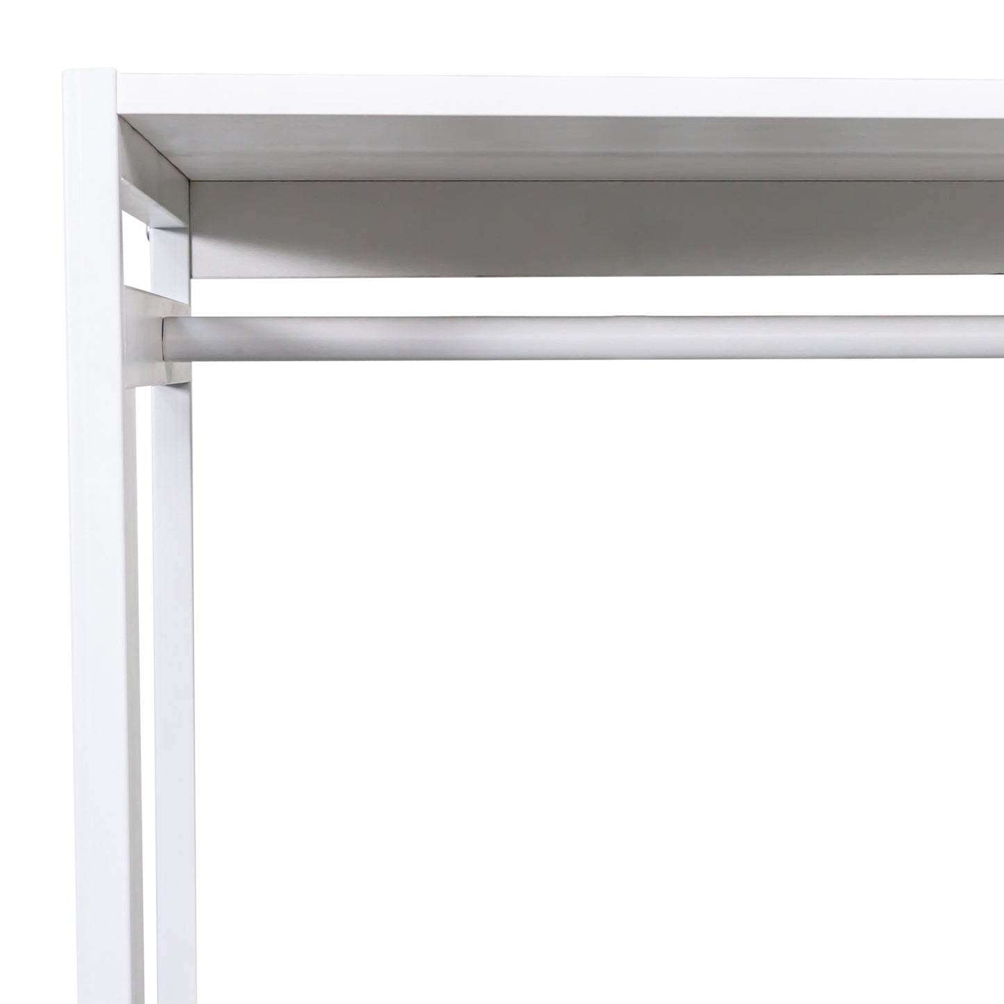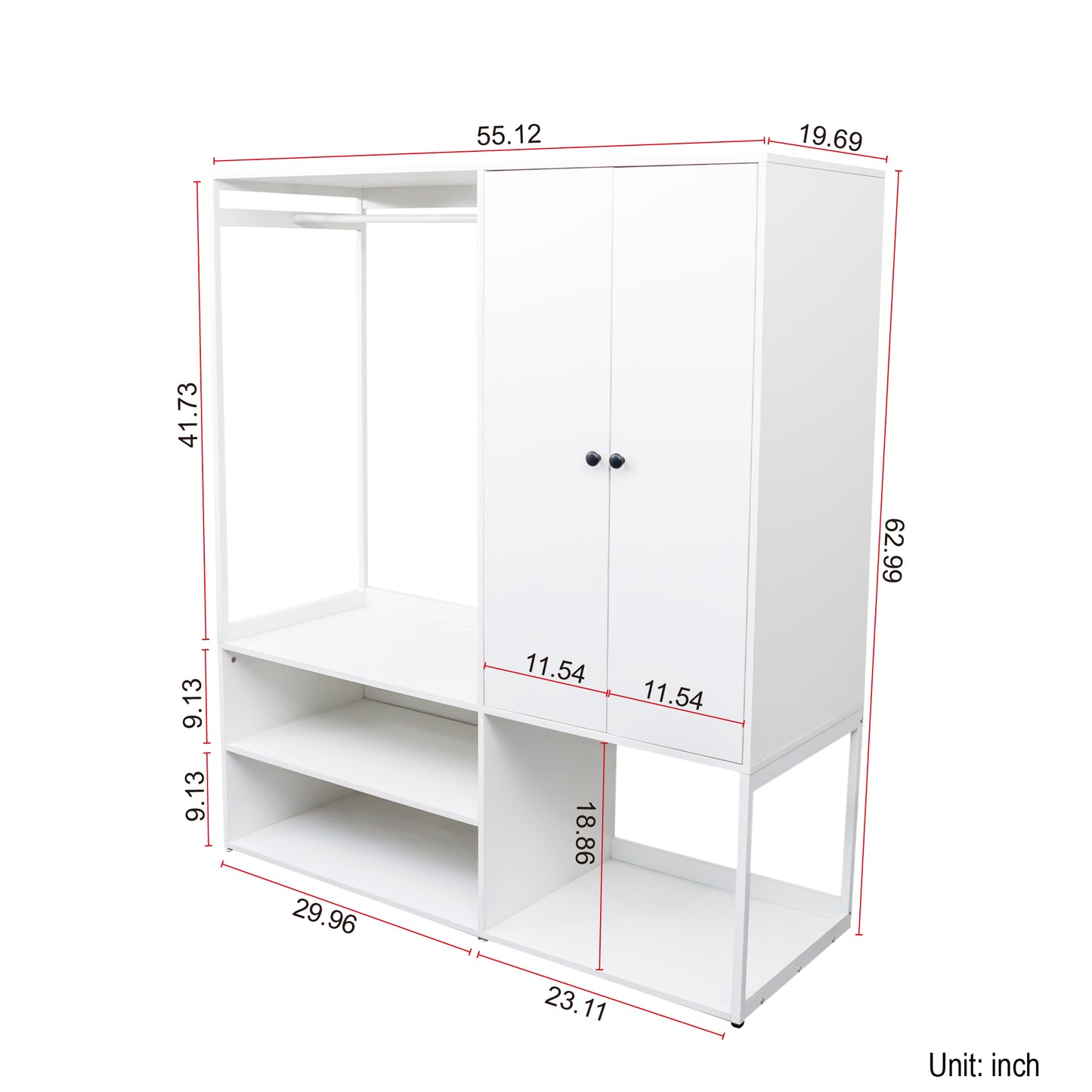 - The white armoire wardrobe closet features a hanging bar, two doors and some storage shelves. a huge storage capacity to meet your needs in different scenarios.The open hanging rod is convenient for hanging and taking, so you can easily choose the clothes you want to wear. Door keeps the freestanding armoire wardrobe closet closed