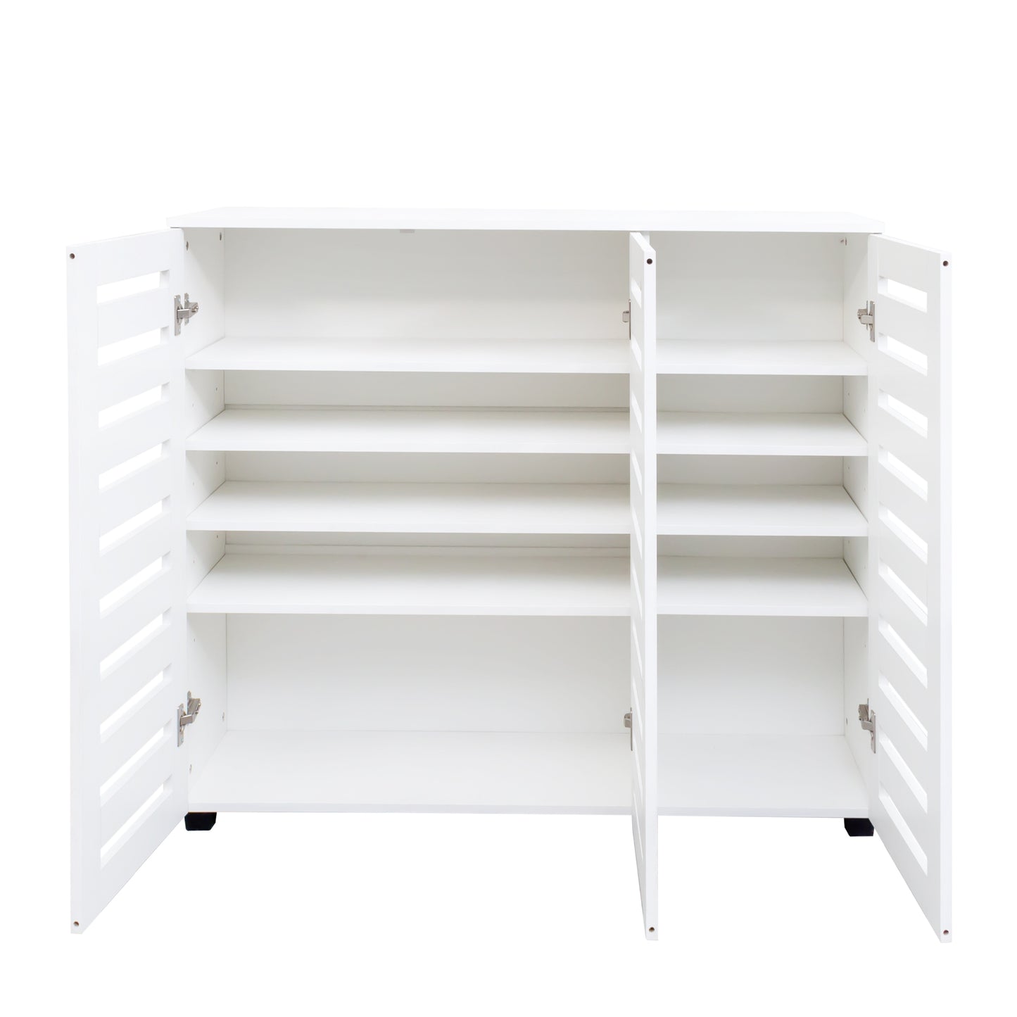 Louvered Door Design: This shoe cabinet applies louvered doors for better ventilation and privacy
