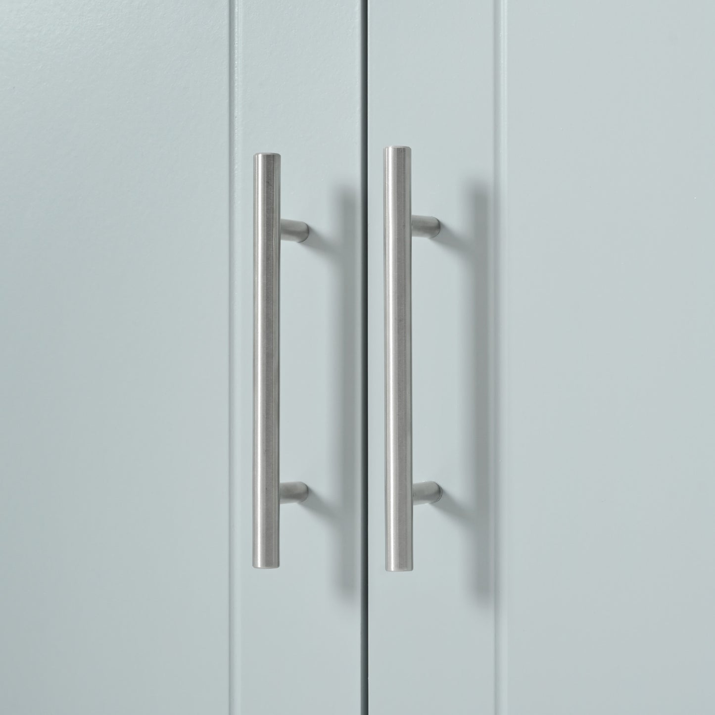 Height-adjustable shelves inside the cabinet doors provide flexibility in accommodating various kitchen items of different sizes.