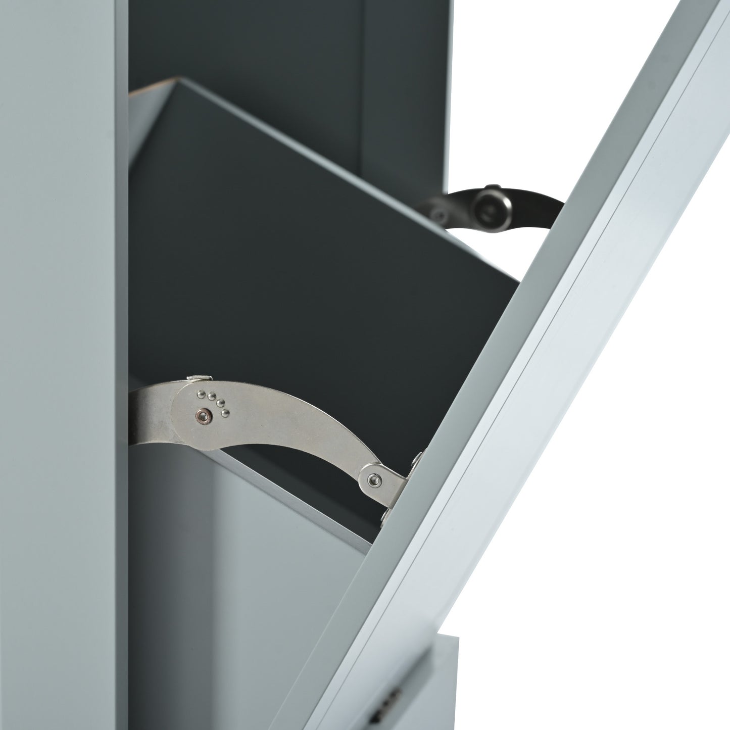 It can accommodate a 10-gallon trash can (not included), effectively concealing the trash and keeping the kitchen looking tidy while also preventing pets from knocking over the bins.