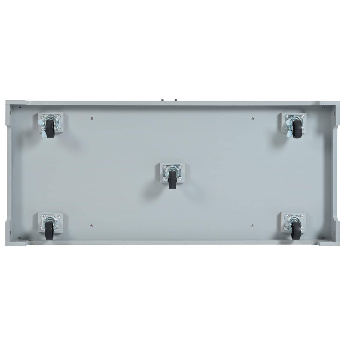This mobile kitchen island on wheels is equipped with 5 universal wheels, 2 of which are lockable. The central placement of one wheel at the base ensures enhanced overall stability during movement.