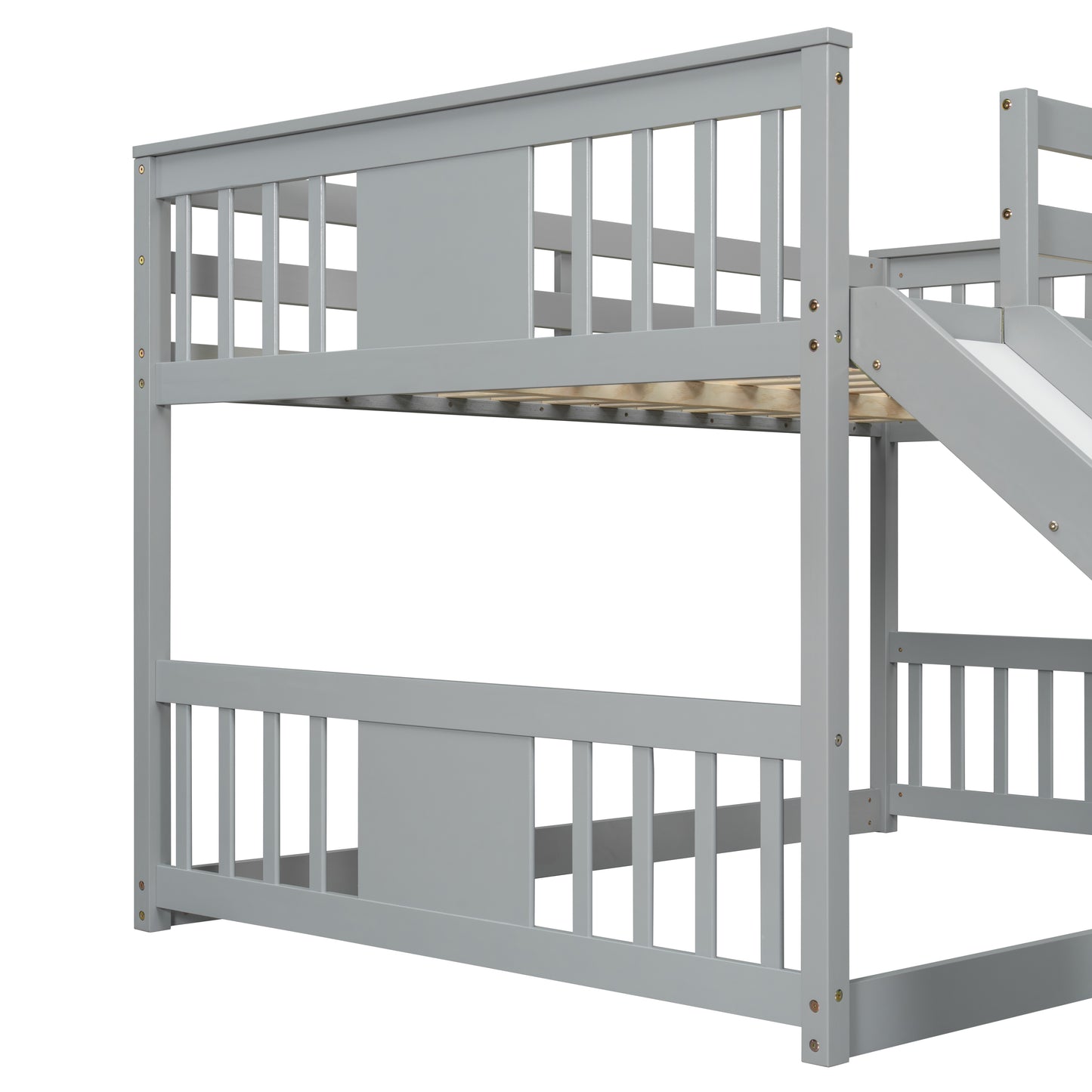Full Over Full Bunk Bed with Ladder with Slide, Gray (Old SKU :LP000208AAE)