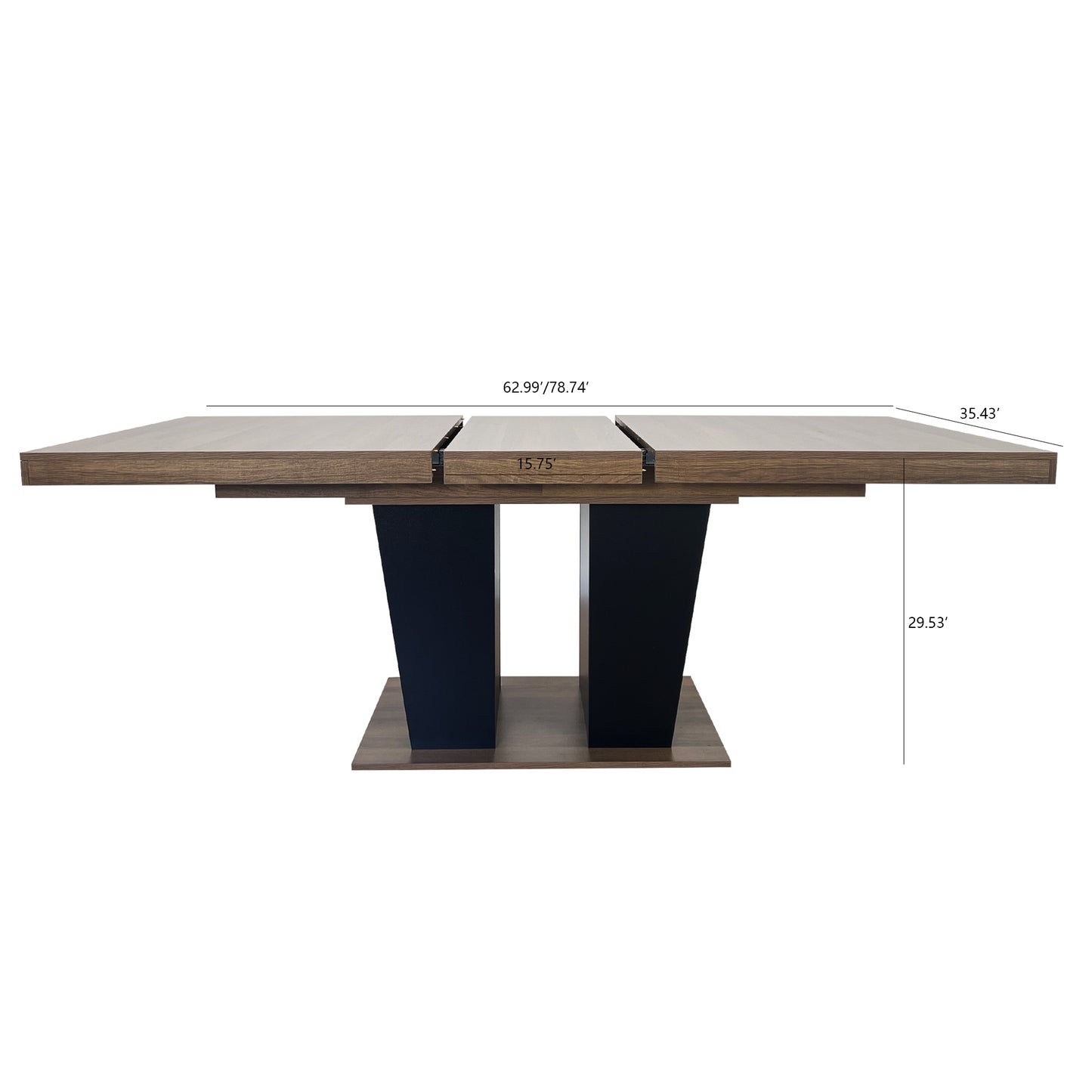 Extendable Dining Room Table for 4-10 People,Wooden Transformer Kitchen Dining Table with Black Double Sturdy Pedestal Base, Modern Expandable Large Table