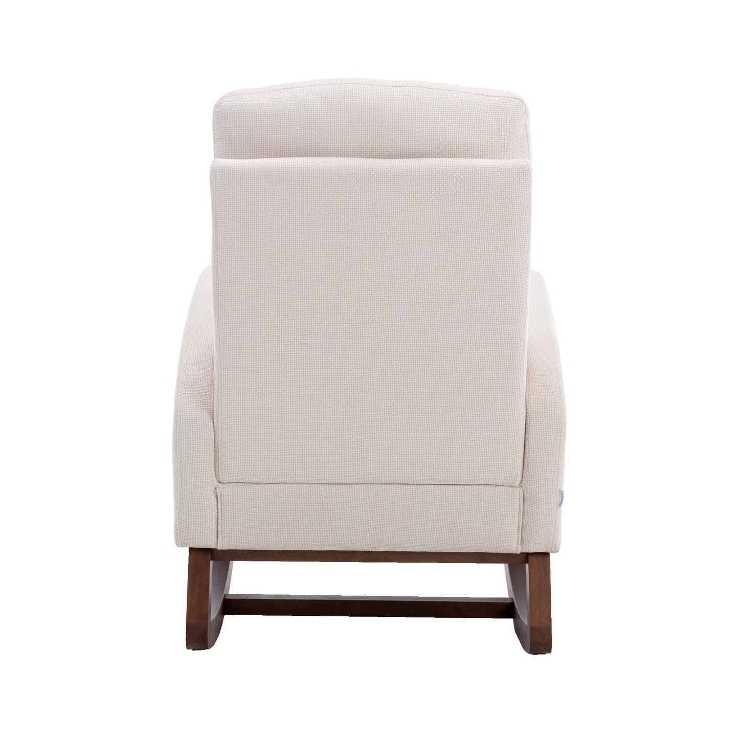Rocking Chair, Modern Glider Chair, Recliner Armchair with Wood Legs and Side Pocket, Nursery Rocking Accent Chair with High Back for Living Room Bedroom (Beige linen)