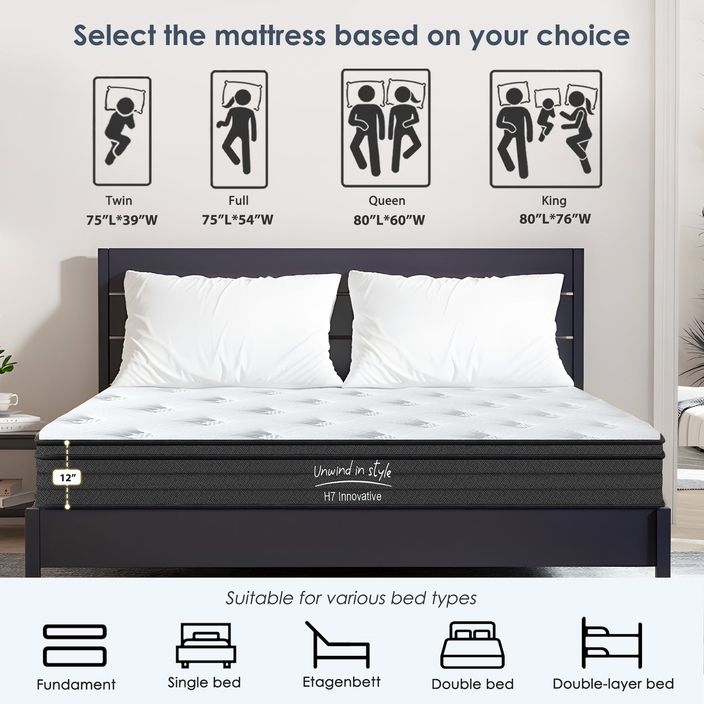 - The medium-firm mattress is suitable for a variety of sleeping positions. Whether you are a back, side, or stomach sleepers, you can feel enhanced support from the head to toe and relief from pressure points. Have a good night’s sleep and wake up refreshed the next day.