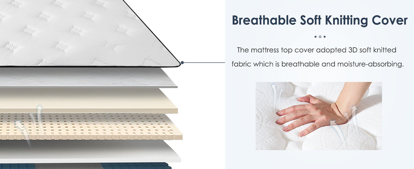 - Featuring high-end knit fabric top cover and cooling memory foam, the mattress is skin-friendly and breathable, giving you a fresh and comfortable sleep experience. Individually wrapped springs in the mattress can not only promote heat dissipation, but also minimize any disturbance caused by the movement of your sleeping partner or pets, helping you enjoy a peaceful night.