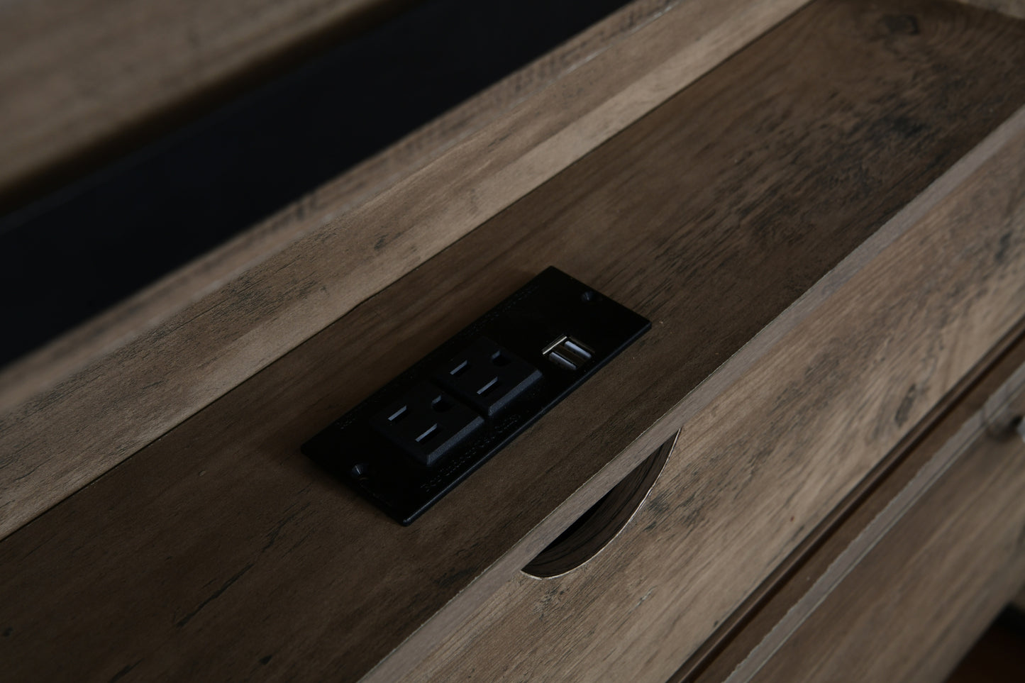- BUILT-IN CHARGING STATION - The AC power supply (2 AC outlets + 2 USB ports) is located on the center shelf of the headboard, perfect for charging your phone, tablet, or headphones while entertaining in bed without having to get up.