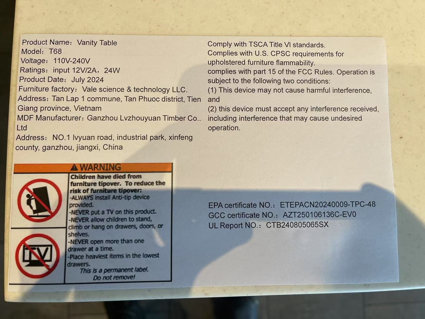 - [Precautions]: There are about 40 boards composing the dressing table. Assembly is a time-consuming task that is expected to take 2-3 hours. 2. There is no numerical lable on each board, so it may be challenging to identify each board according to the image in the installation manual. 3. There may be slight sawdust residue on the boards inside the packaging, and if there are very strict requirements for it, it may not be suitable for you.
