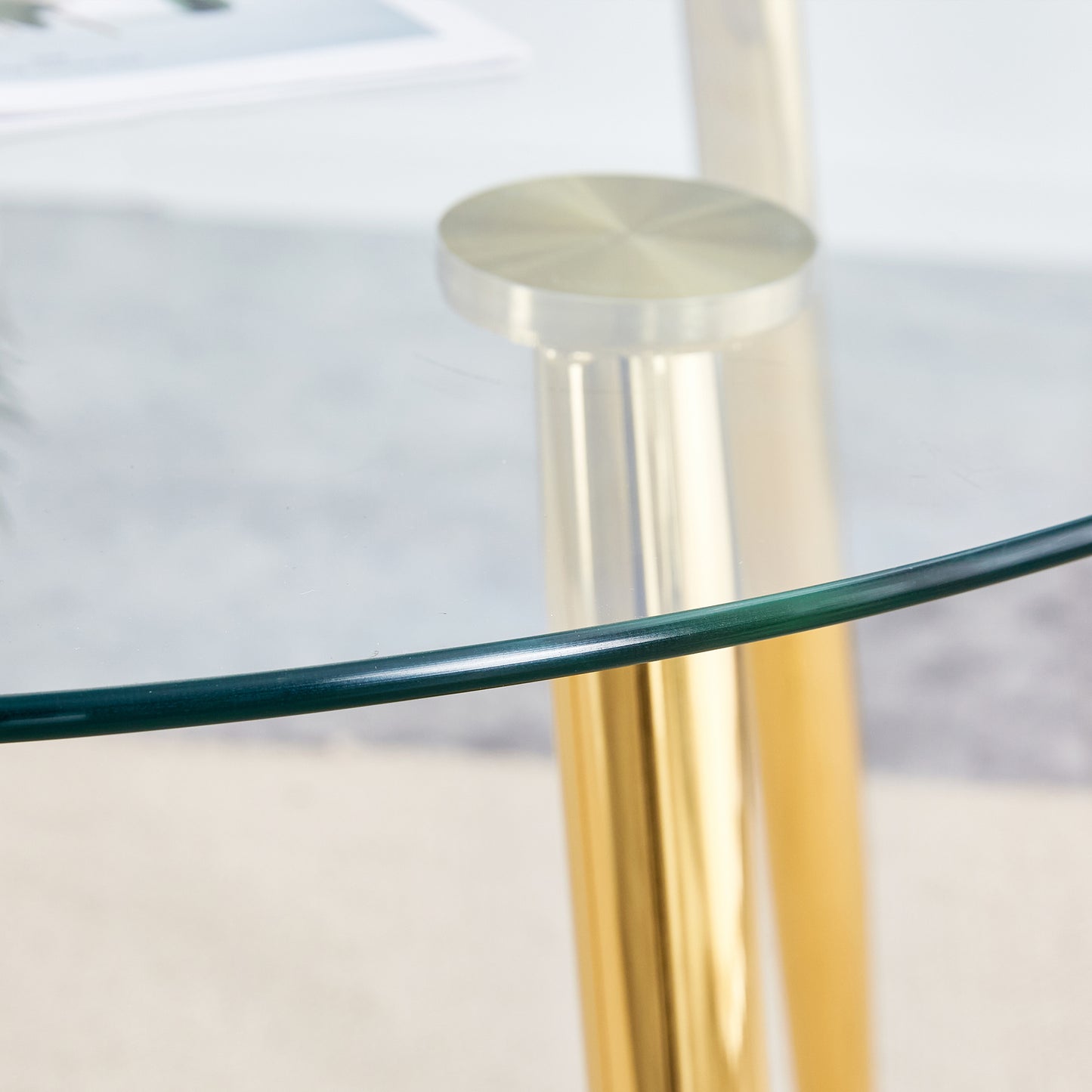 - Modern Minimalist Style Round Clear Tempered Glass Table with Gold Metal Legs