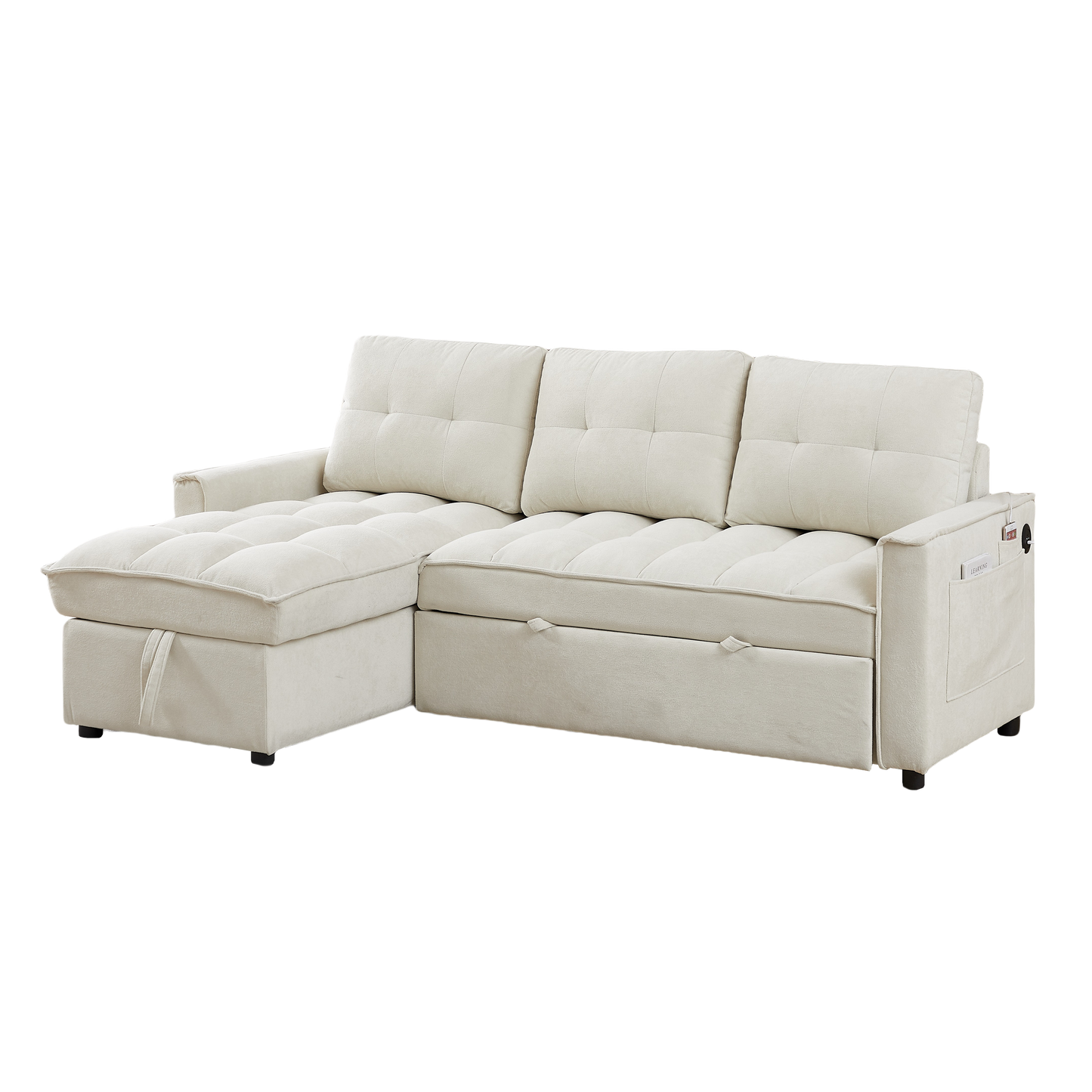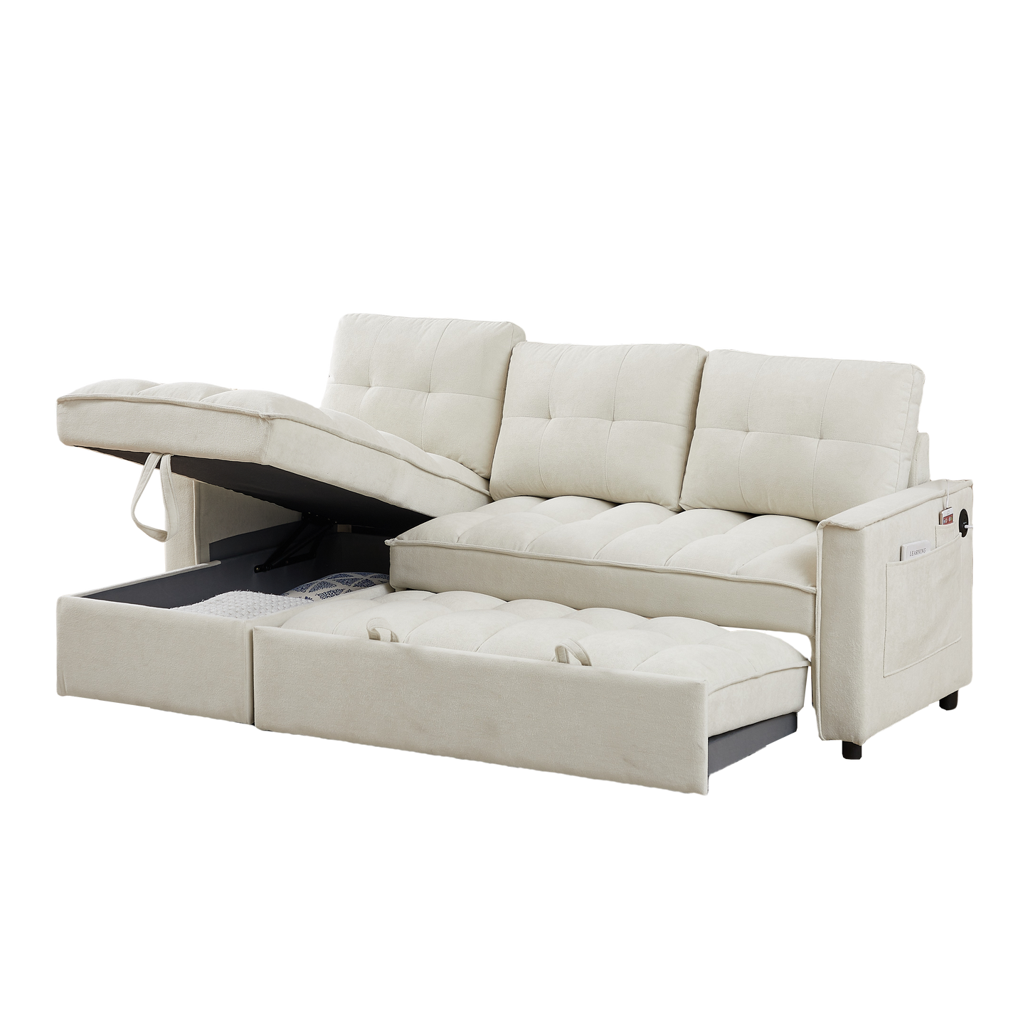 - ✔ STORAGE SPACE: The sleeper sofa has a hidden storage space underneath the chaise area and side storage pockets that provide an extra area for blankets, pillows, magazines, remotes or other items. This remarkable feature makes it an exceptional choice for those with limited storage space in their home.