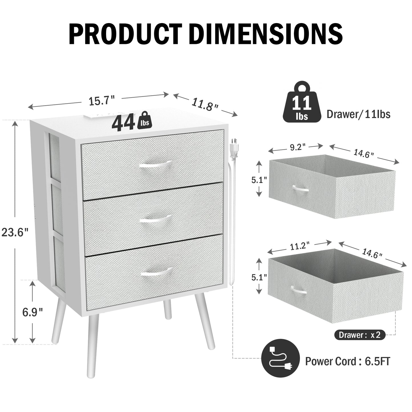 2 Pack Modern Nightstand with Charging Station, Bedside Tables with LED Light and Fabric Drawers