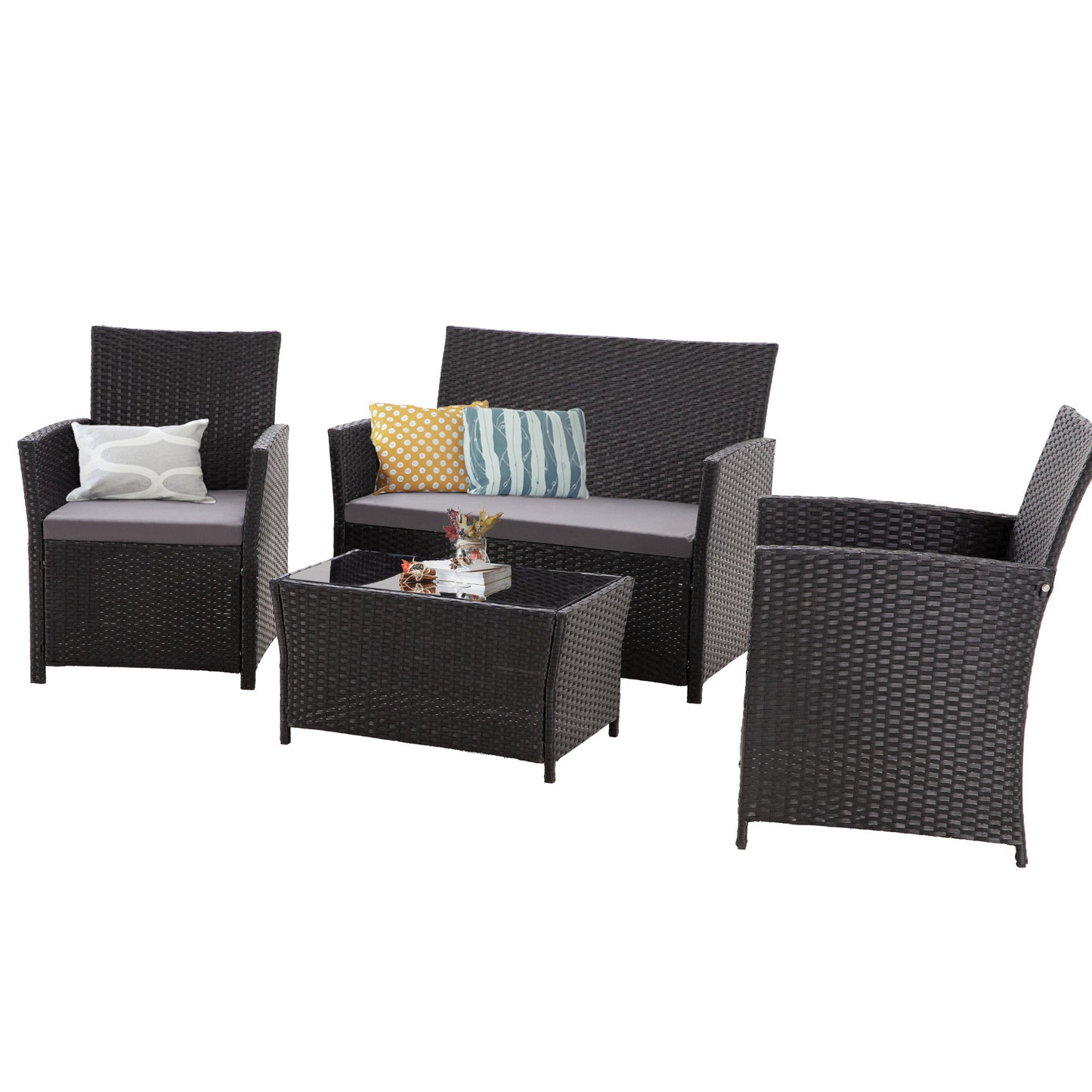 4 Piece Outdoor PE Wicker Furniture Set, Patio Black Rattan Sectional Sofa Couch with Washable Cushions