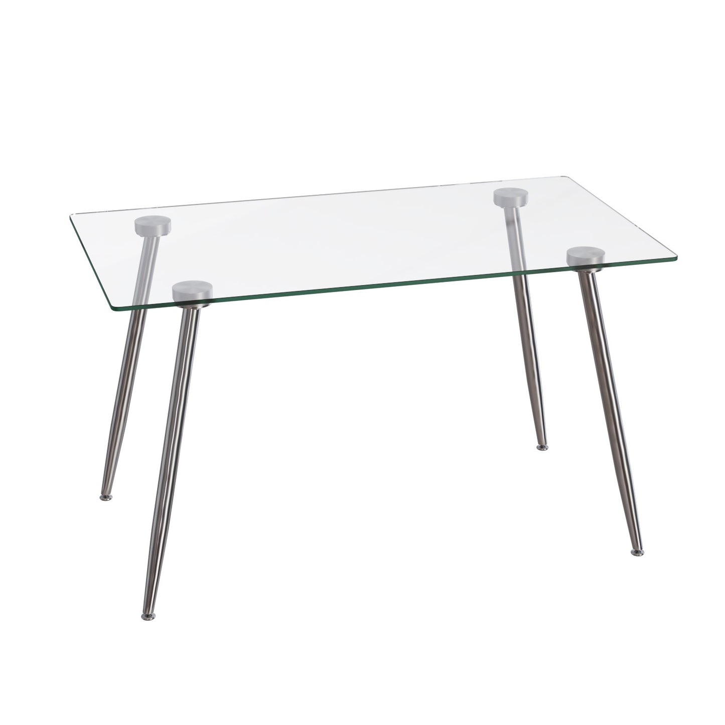 - 3.【Glass Dining Table】 Elevate your dining space with our glass dining table, boasting a sleek design with four silver electroplated metal legs that seamlessly combine style and stability.