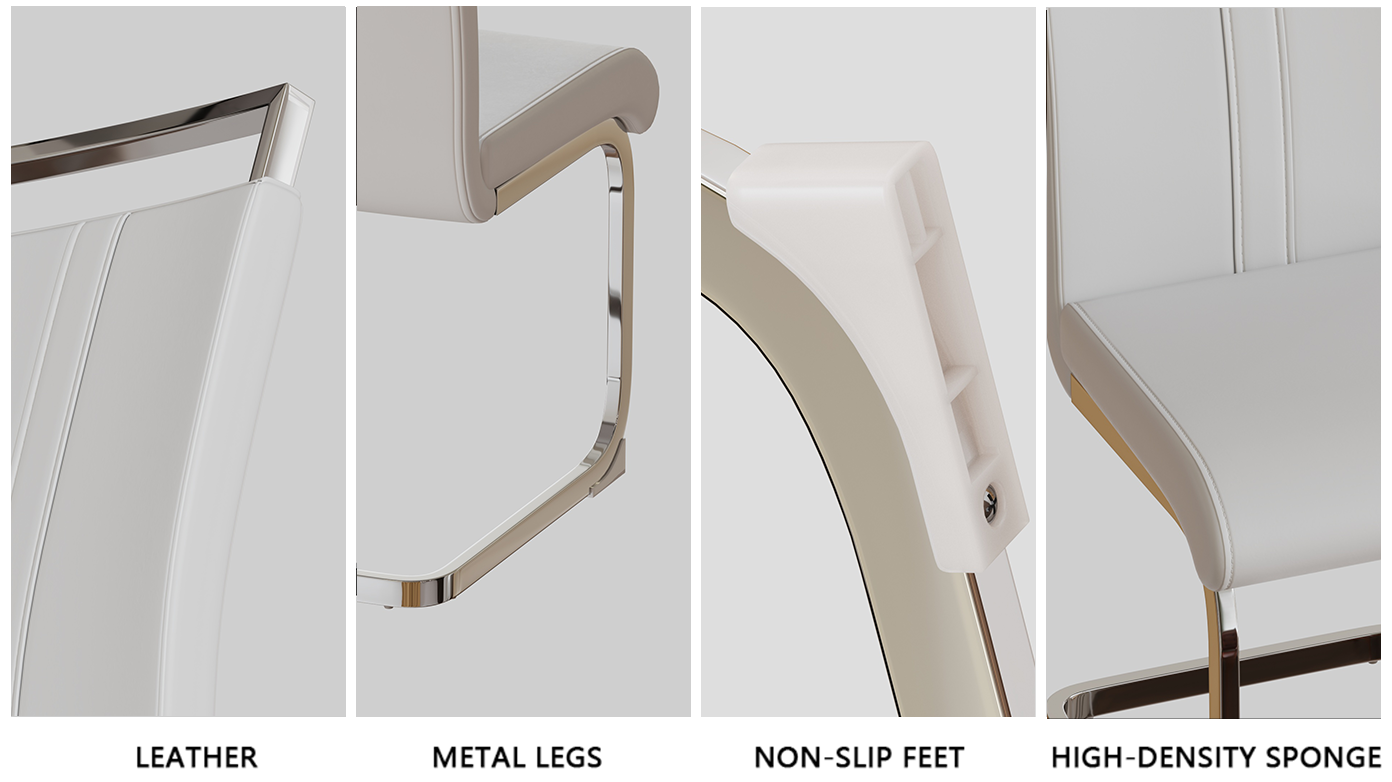 - 7.【Firm and Sturdy】 The sturdy dining chairs are complete with C-shaped plating base for a uniquely modern look, with anti-scratch plastic feet on the bottom to prevent damage to the floor.