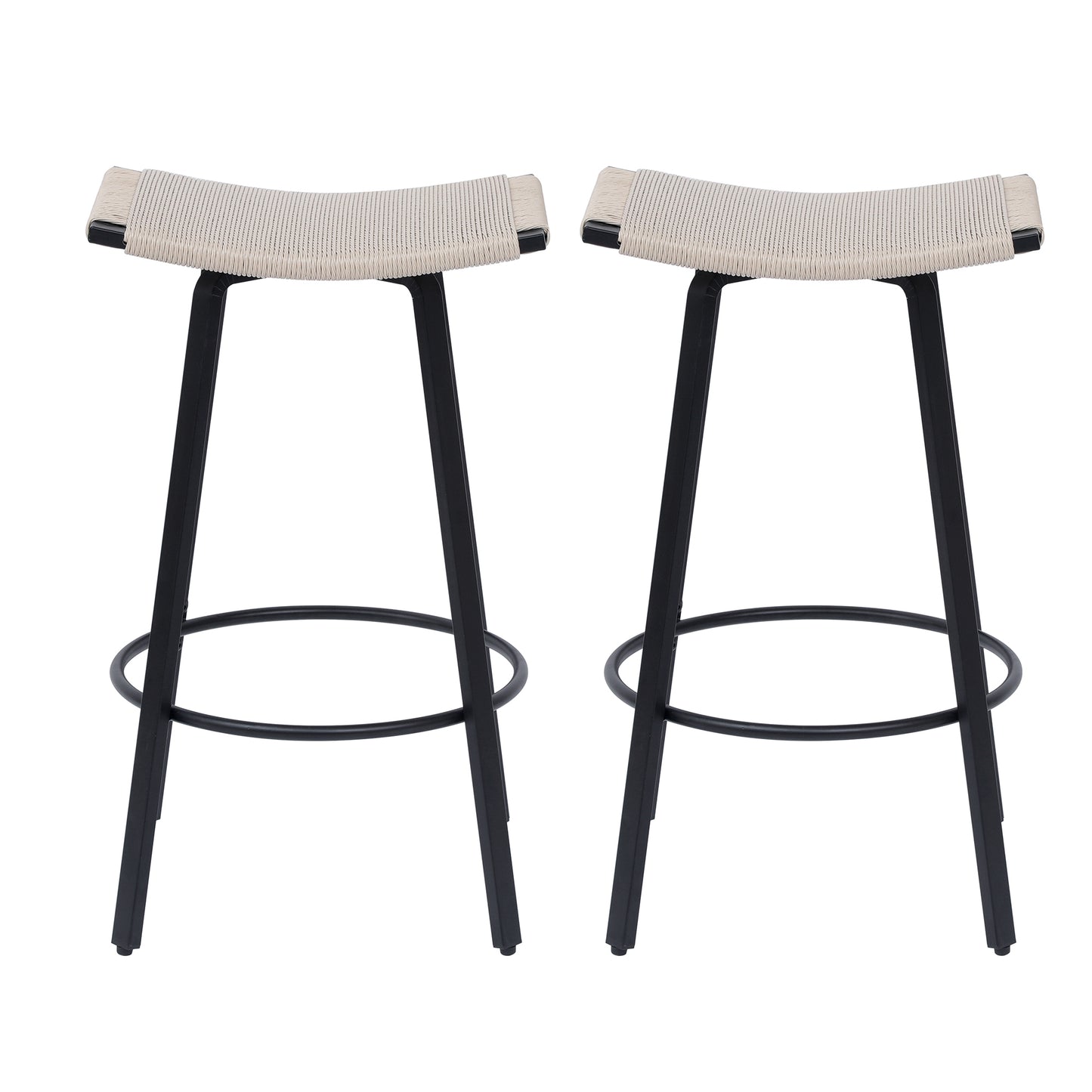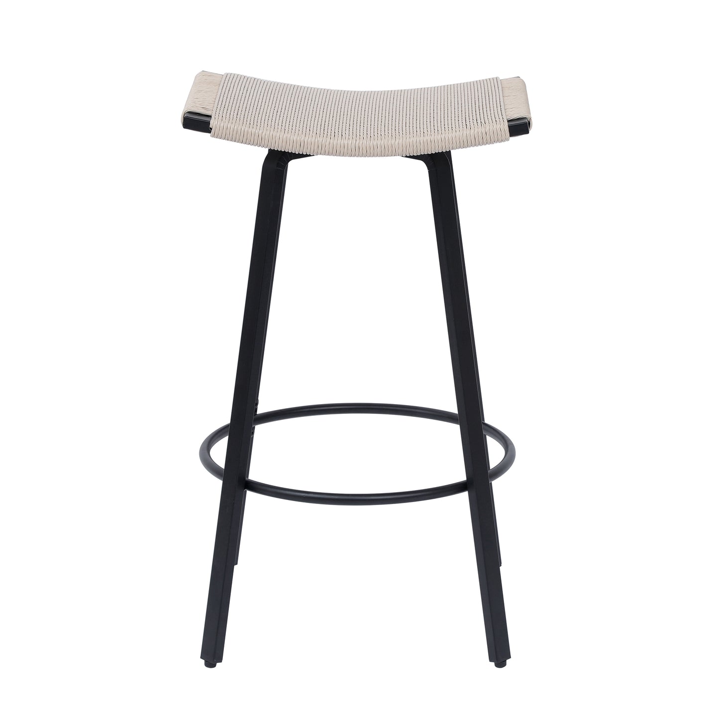 - Robust and Reliable: Our counter bar stool boasts a solid black powder-coated metal frame and a handwoven PVC seat that can withstand up to 220lbs. The all-weather PVC rope is long-lasting, ensuring it won't fade easily. The black metal frame has a powder-coated finish, making it ideal for long-term use, both indoor and outdoor. The stylish black metal and PVC rope combination add a modern aesthetic appeal.