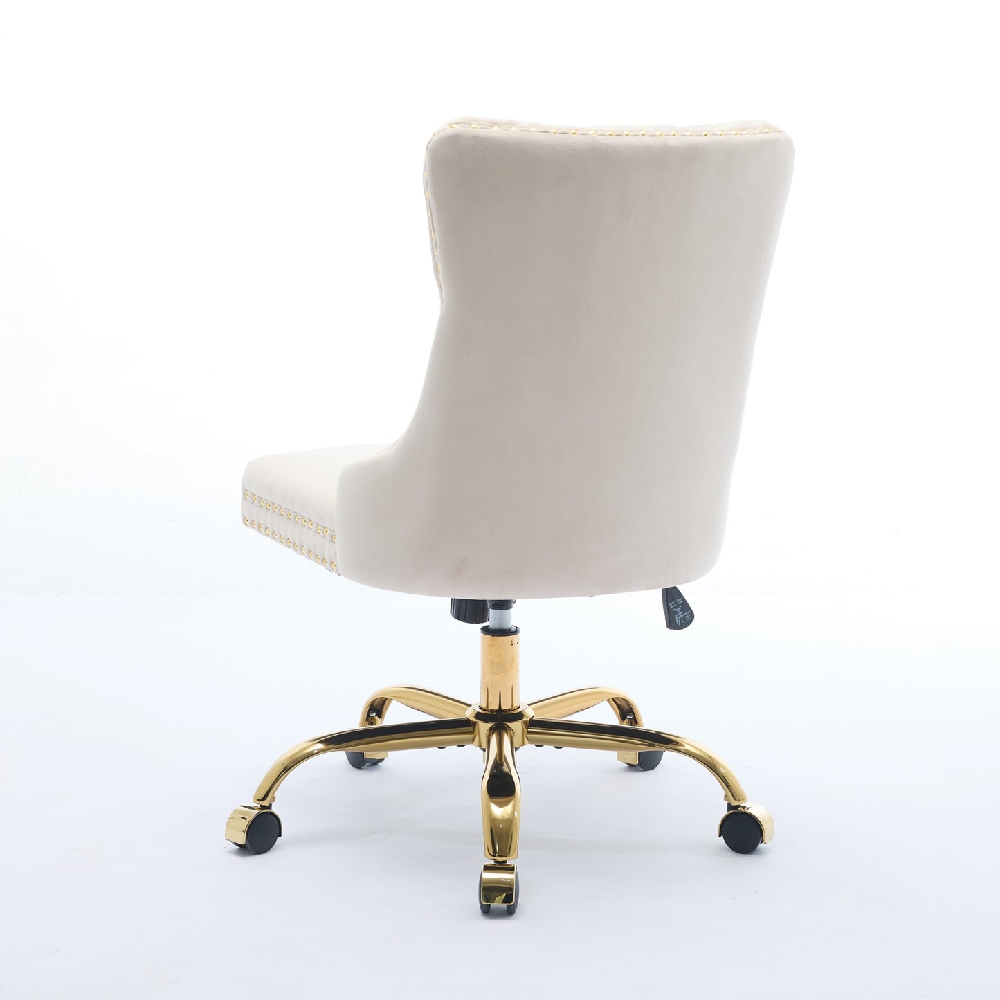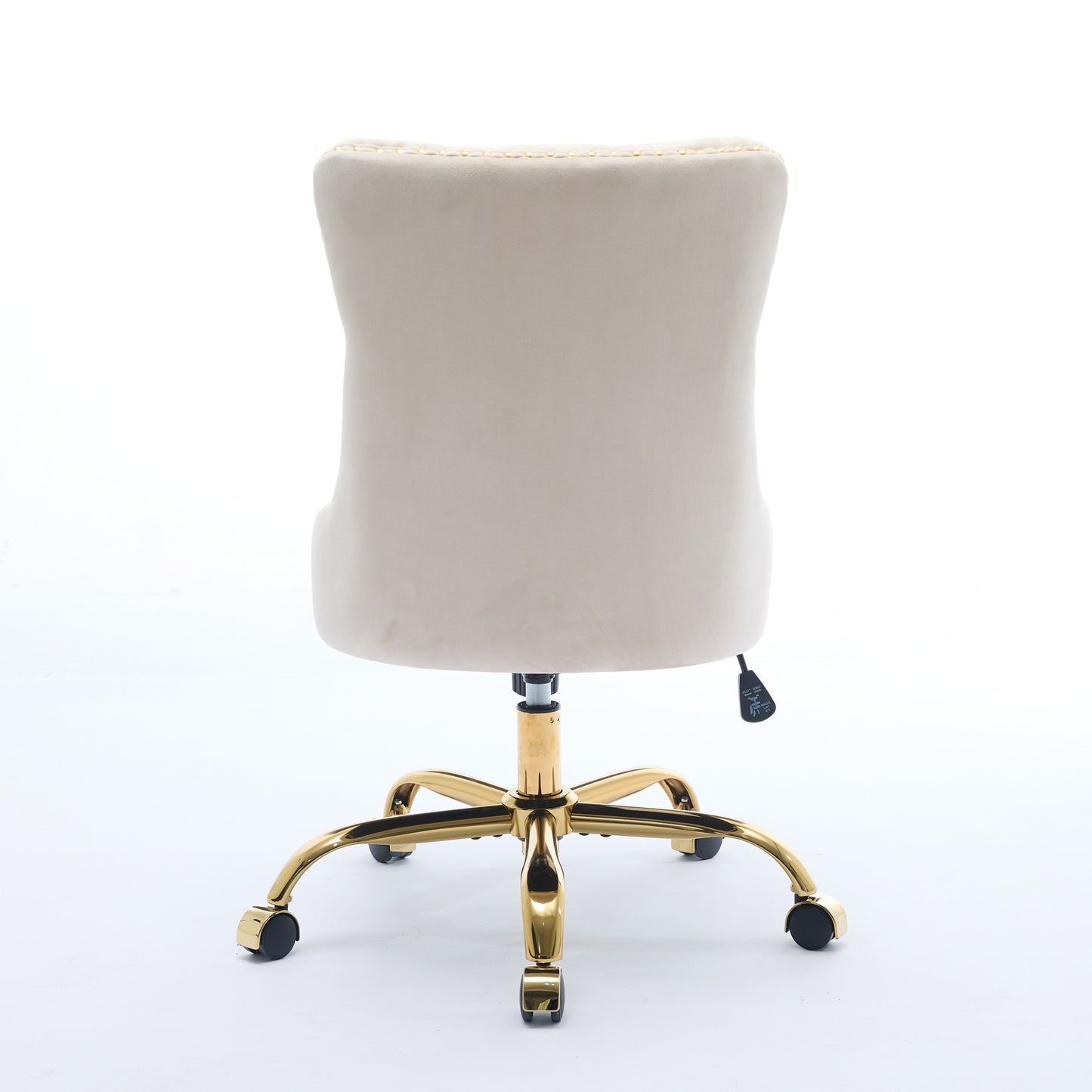 A&A Furniture Office Chair,Modern Velvet Upholstered Tufted Button Home Office Chair with Golden Metal Base,Adjustable Desk Chair Swivel Office Chair (Beige)