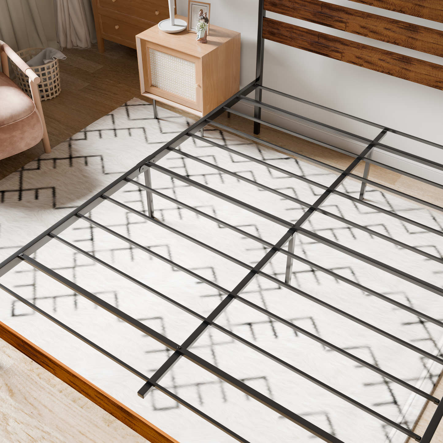 - Modern Industrial Style: Retro wooden headboard & foot board mixed with black metal add chic to any room style. Metal slats are all coated with anti-rust powder to prolong service life