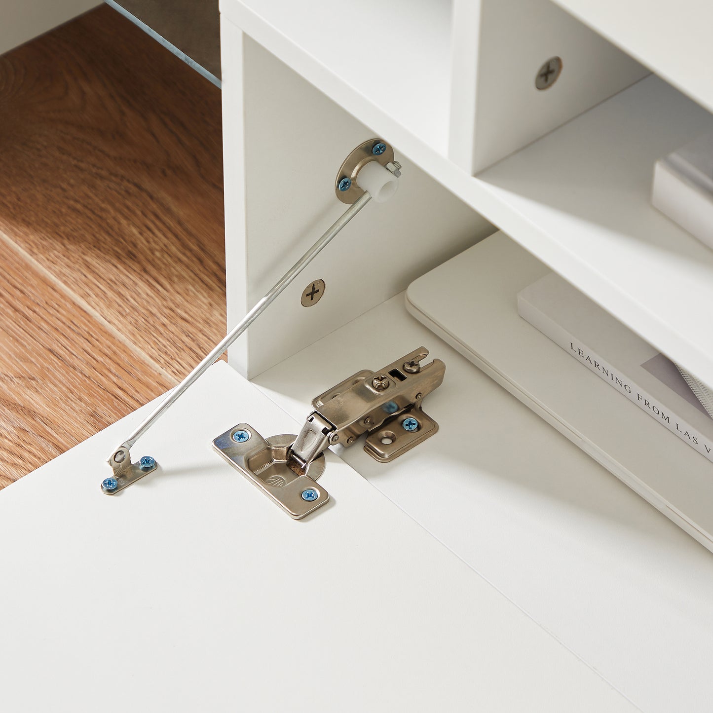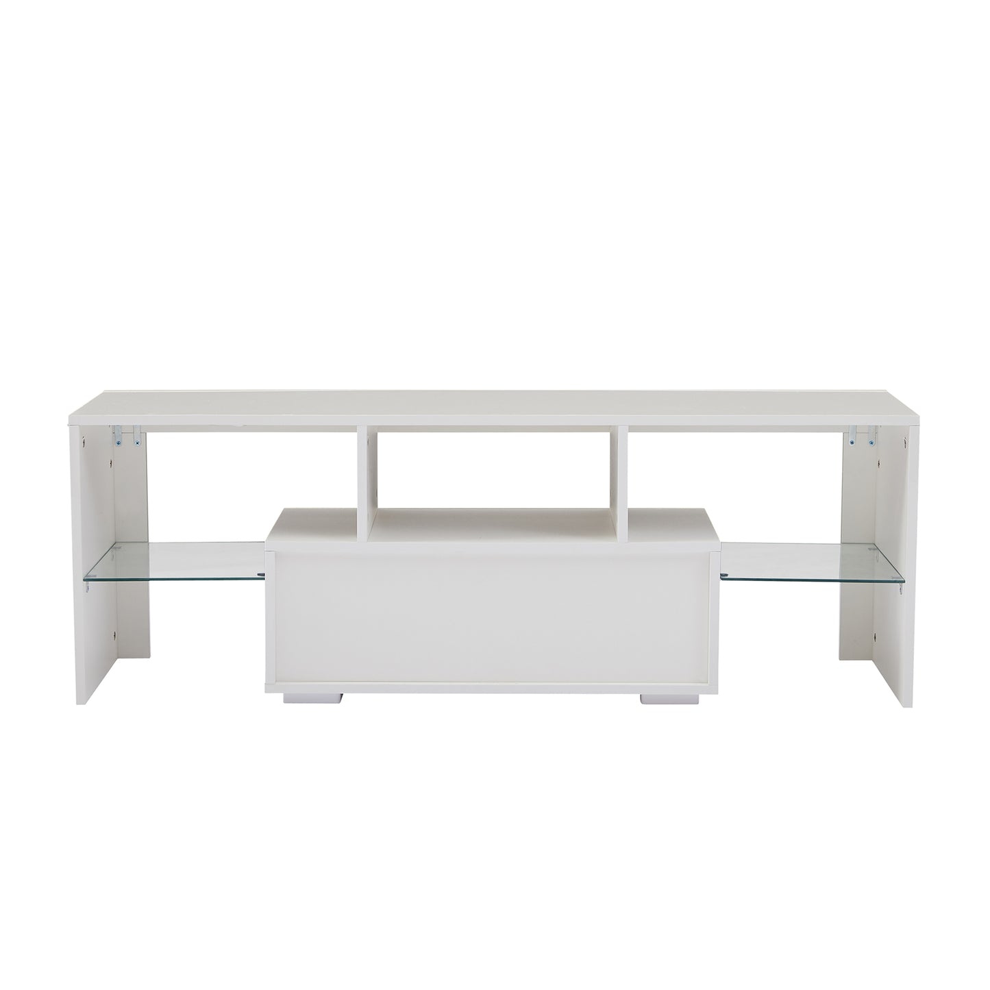 FashionTVstandTVcabinet,EntertainmentCenter,TVstationTV console,media console,with LEDlight belt,light belt remote control,toughenedglassshelf,metal handle,Canbeplaced in the living room,bedroom,white