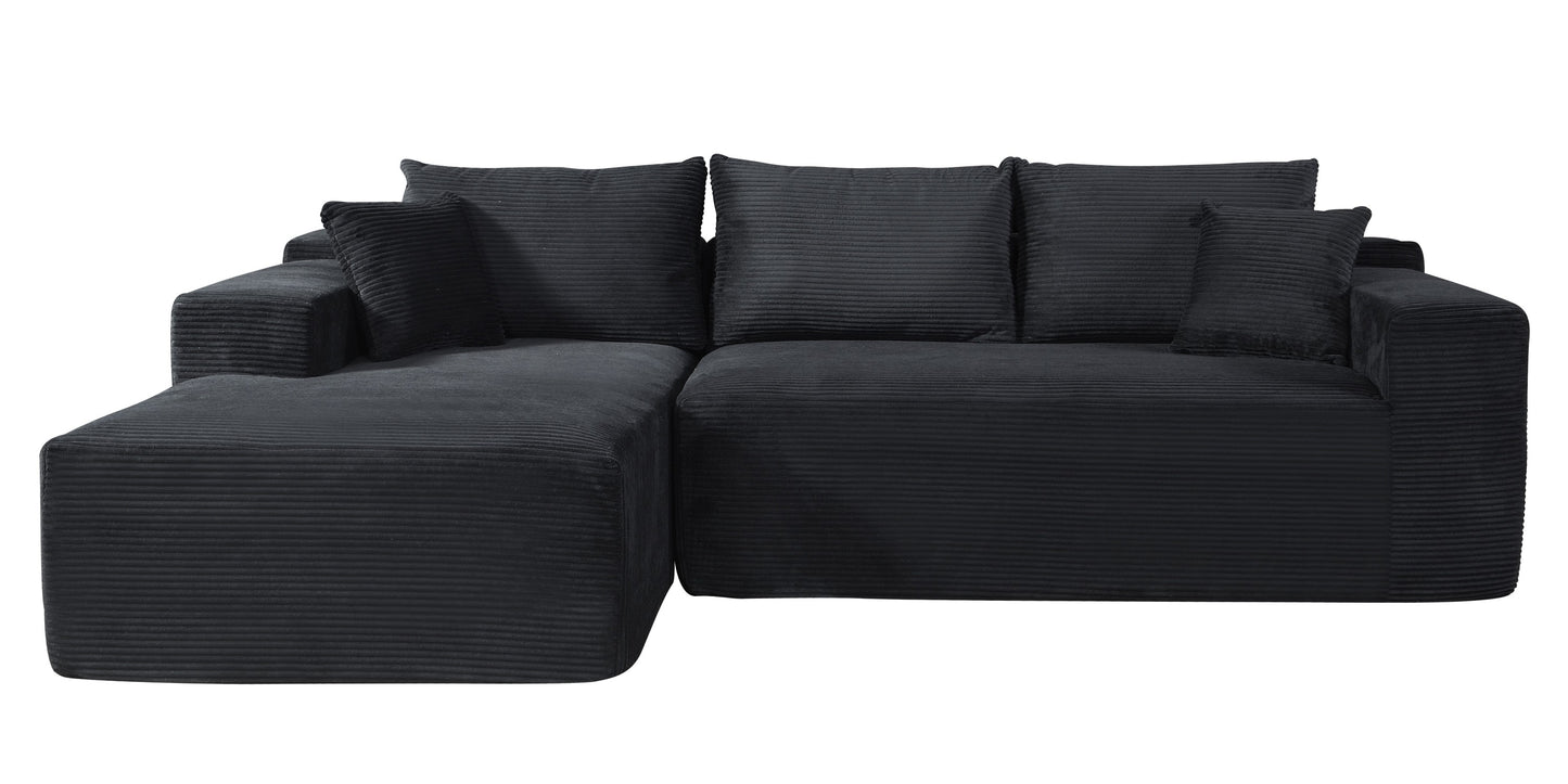 2-Piece Convertible Corduroy L-Shaped Sofa in a Box with Pillows, 3-Seater Modular Sectional Couch, Compressed Living Room Furniture, Black (Left Facing)