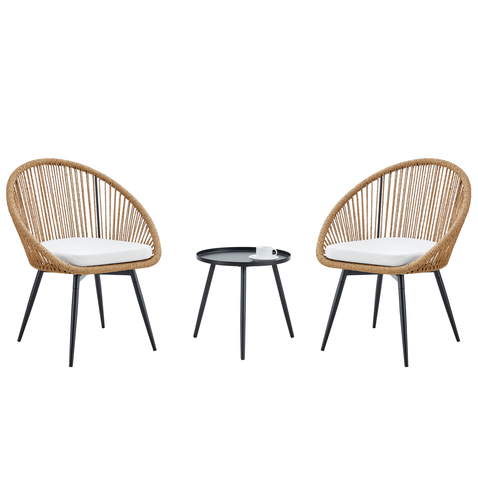 Modern 3-Piece Set: 17.7' Anti-Spill Round Coffee Table + 2 Rattan Swivel Chairs, Outdoor Patio Furniture for Tea Time.Suitable for Various Outdoor Venues.3-piece Set Packaged As A Single Package.