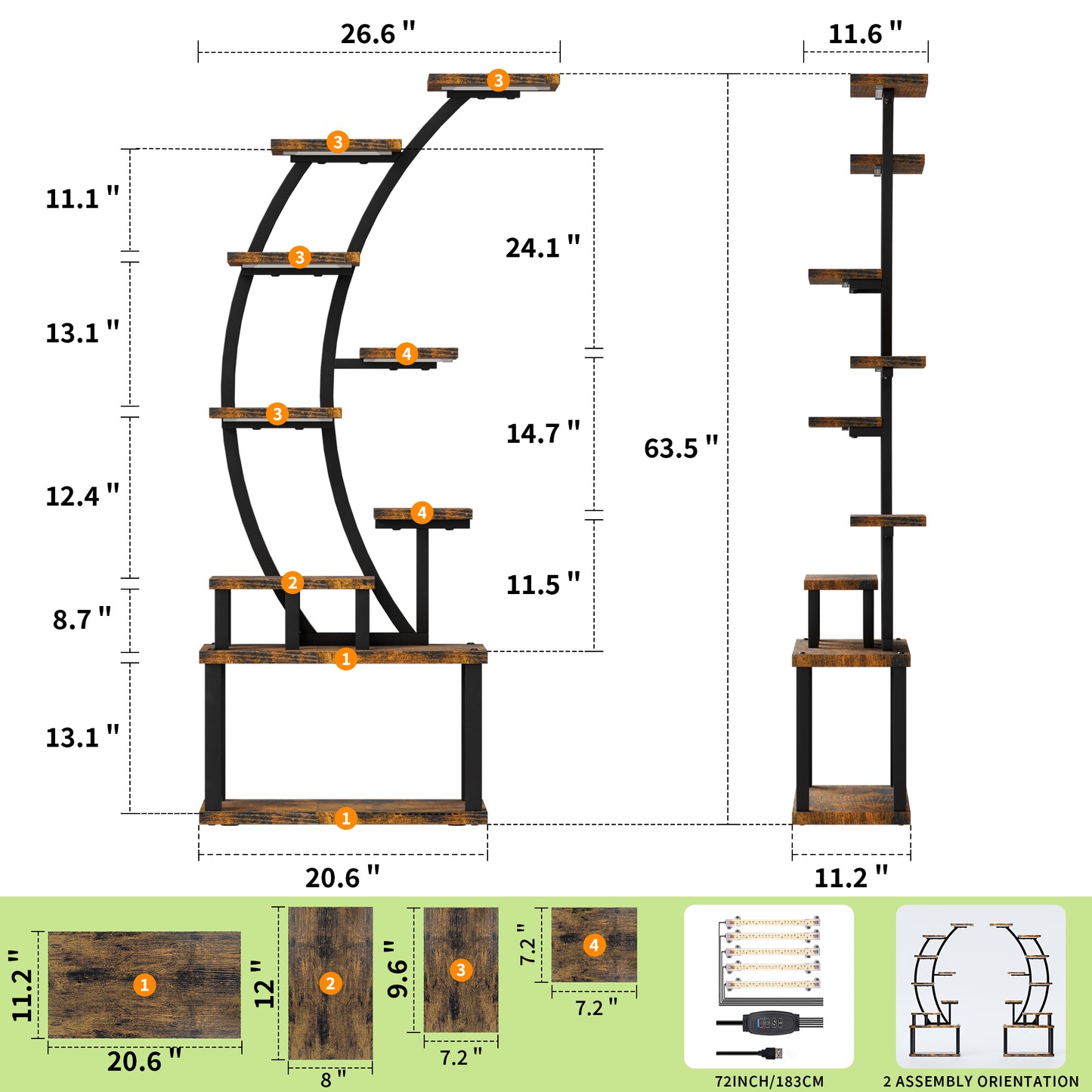 - 【9-Tier, 63' Elevated Plant Stand】 This 63' plant rack with increased height features 9 tiers, 9 pot stands, and 5 LED light, providing you with ample storage space to display plants as much as possible. In addition, it can also serve as a display shelf for placing books, pictures, collectibles, awards, small ornaments, artworks, crafts, and more. This tall plant stand will be a creative addition to your home decor.