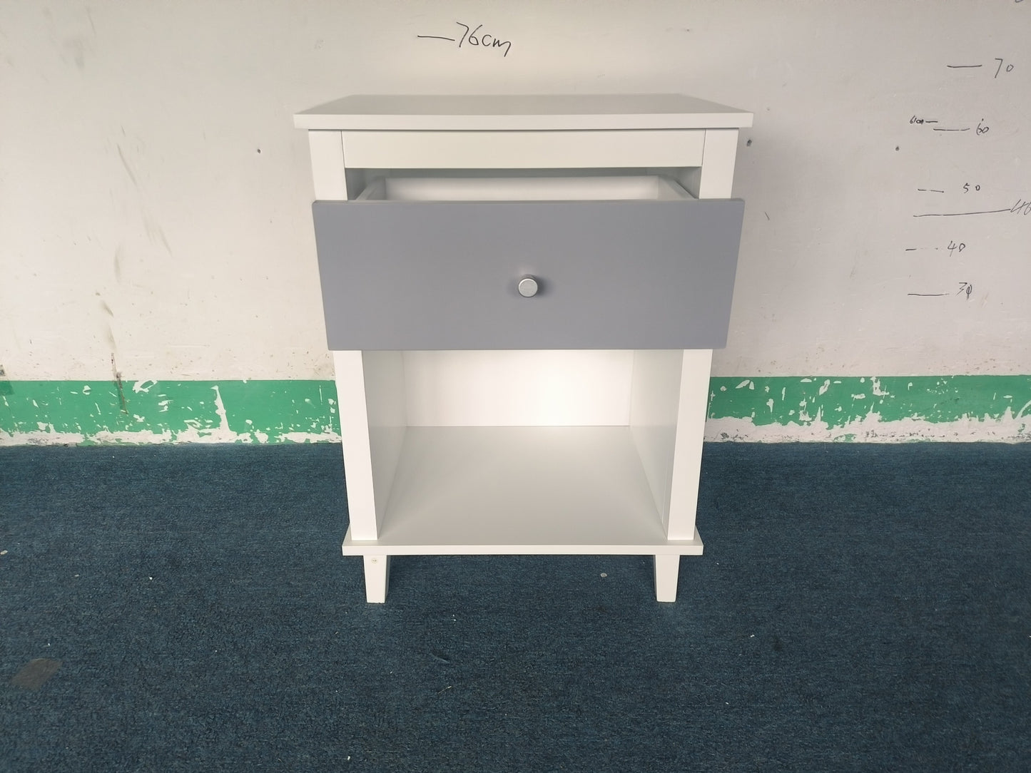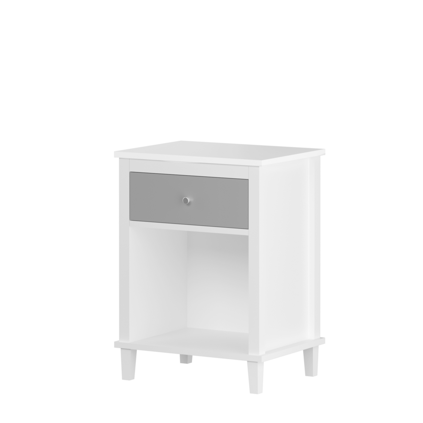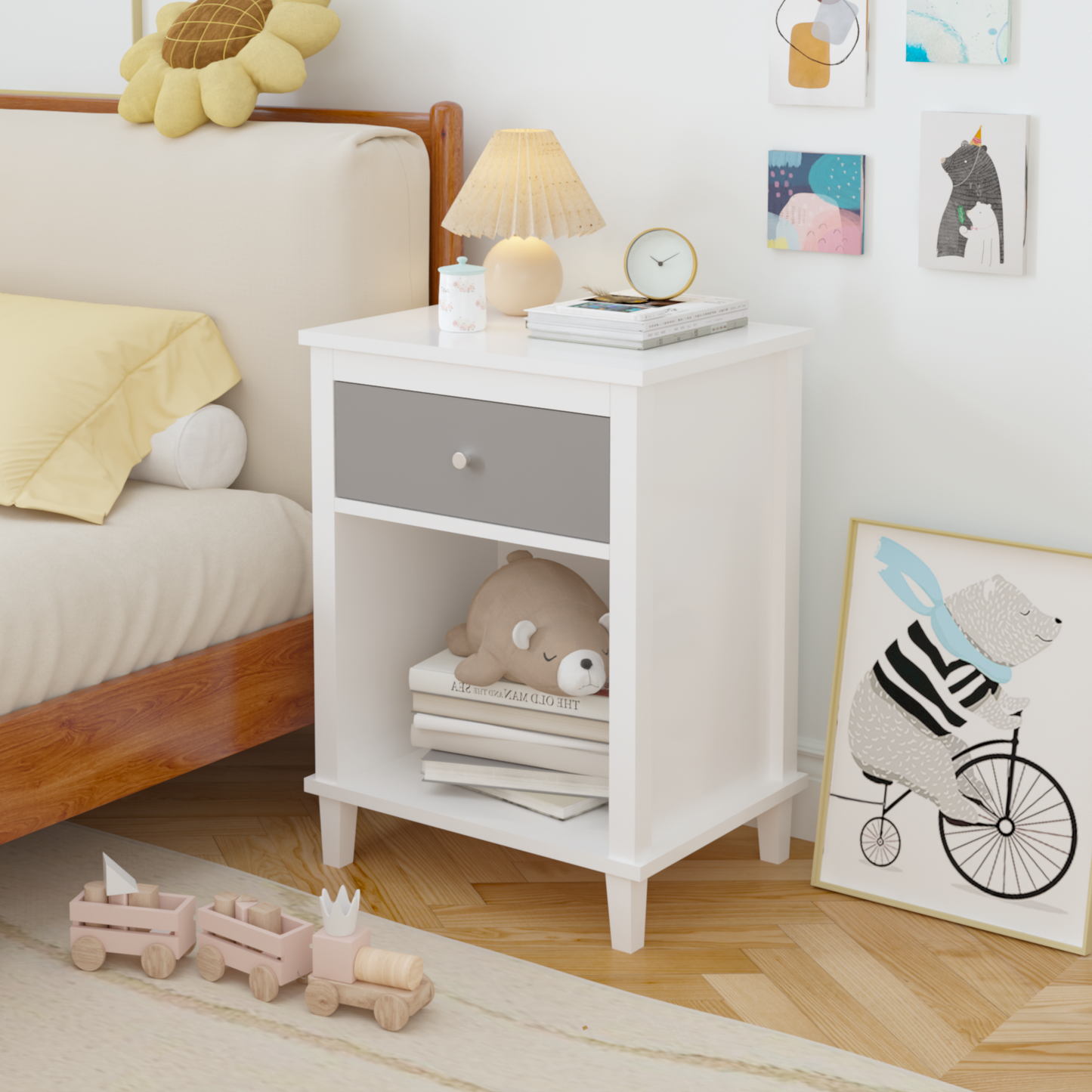 26.77''H Wooden Nightstand with One Drawer One Shelf for Kids, Adults,Gray+Silver handle