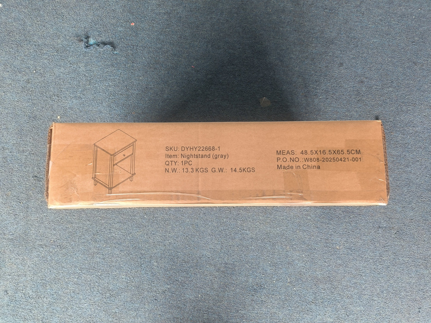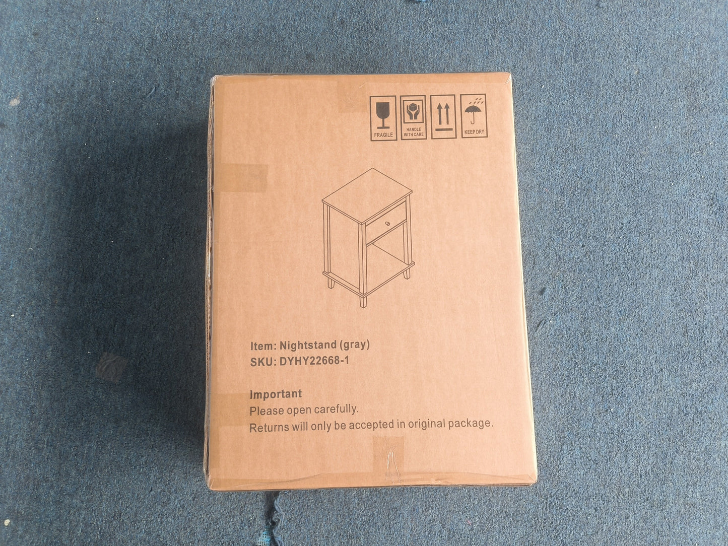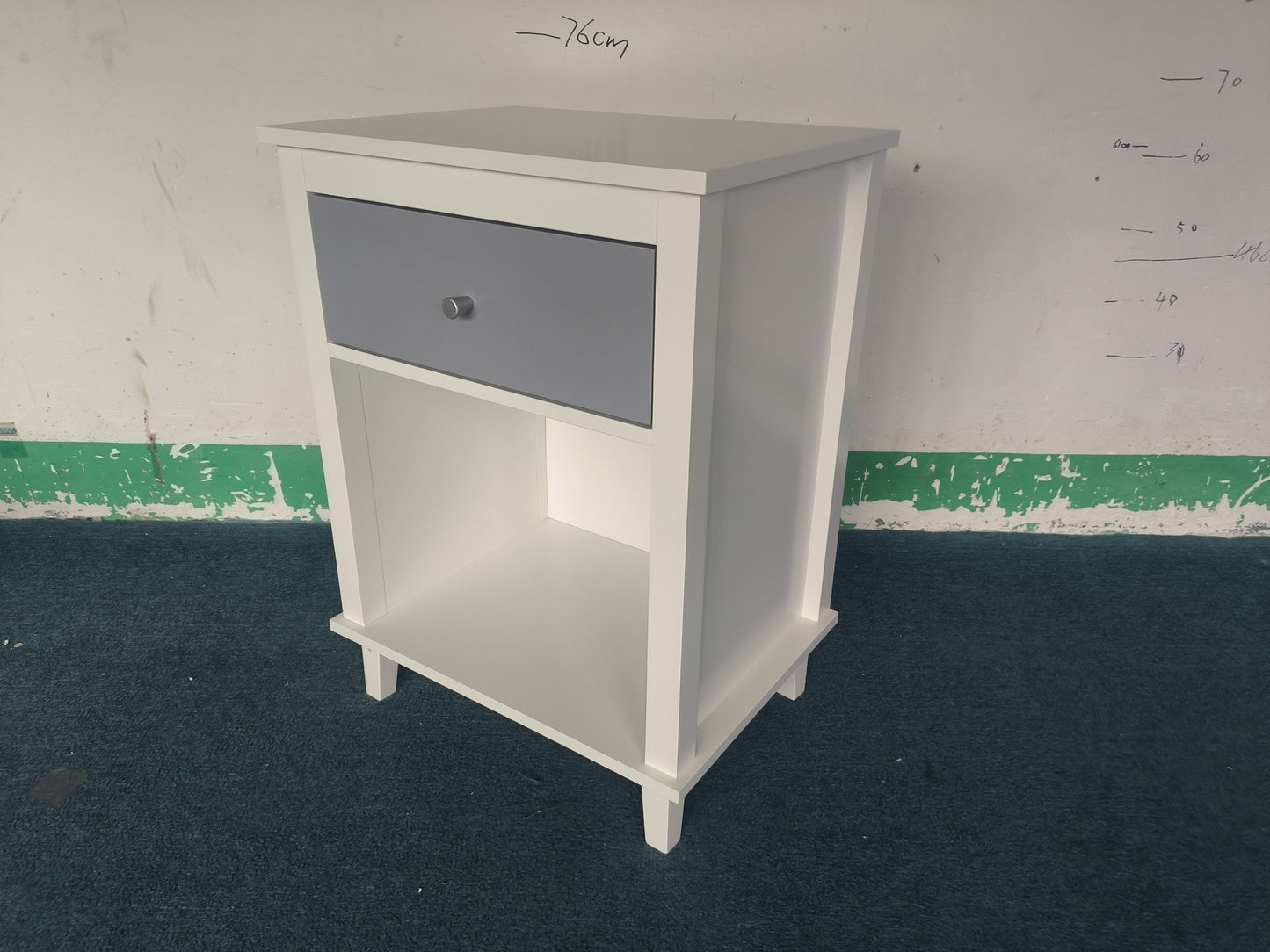 26.77''H Wooden Nightstand with One Drawer One Shelf for Kids, Adults,Gray+Silver handle