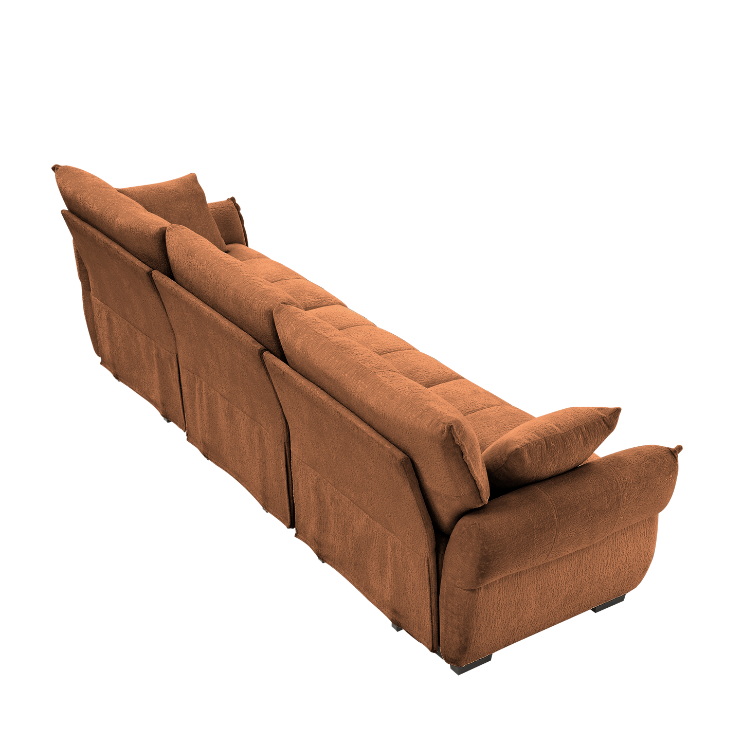 3-Seater Sofa Set with 2 Ottomans, Solid Wood Frame, Chenille Cover, Burnt Orange
