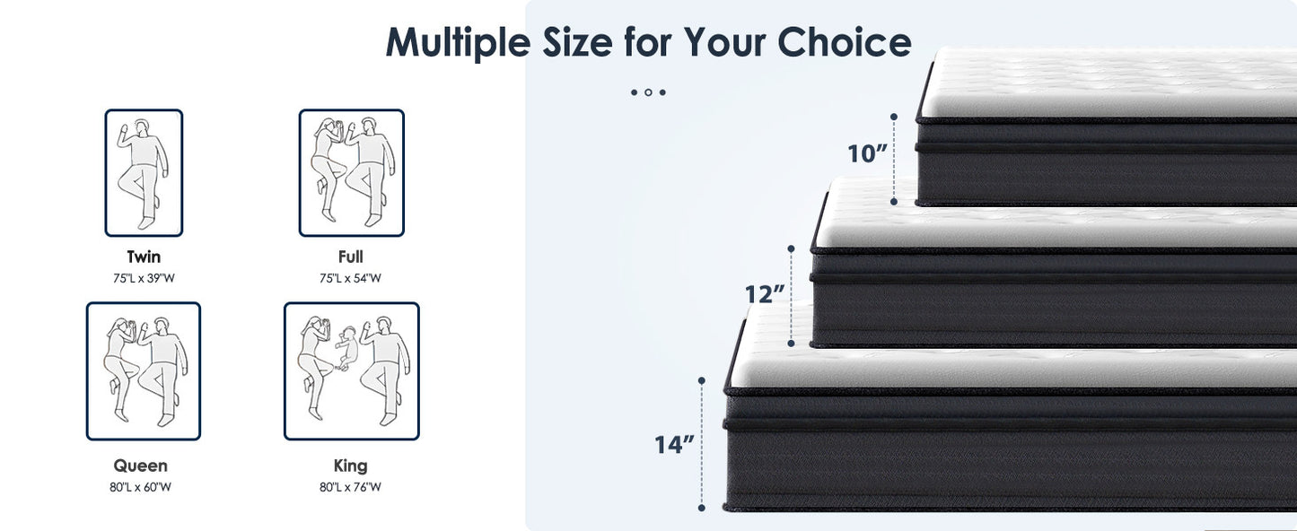 - The hybrid mattresses combines gel infused memory foam and spring support system, this hybrid mattress provides comprehensive support from head to toe. It conforms to the natural curves of your body, promoting proper spinal alignment and relieving pressure points. Whether you sleep on your back, side, or stomach, this memory foam mattress helps reduce fatigue and offers a restful sleep.