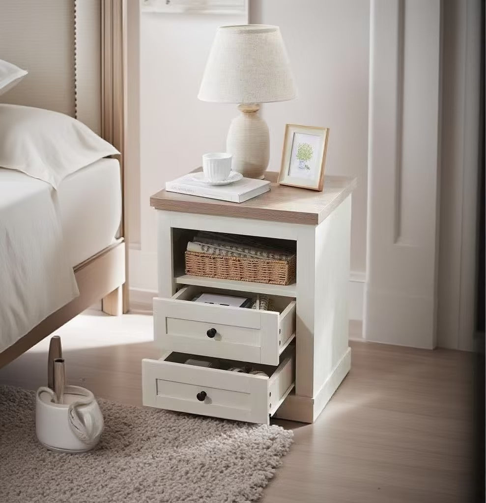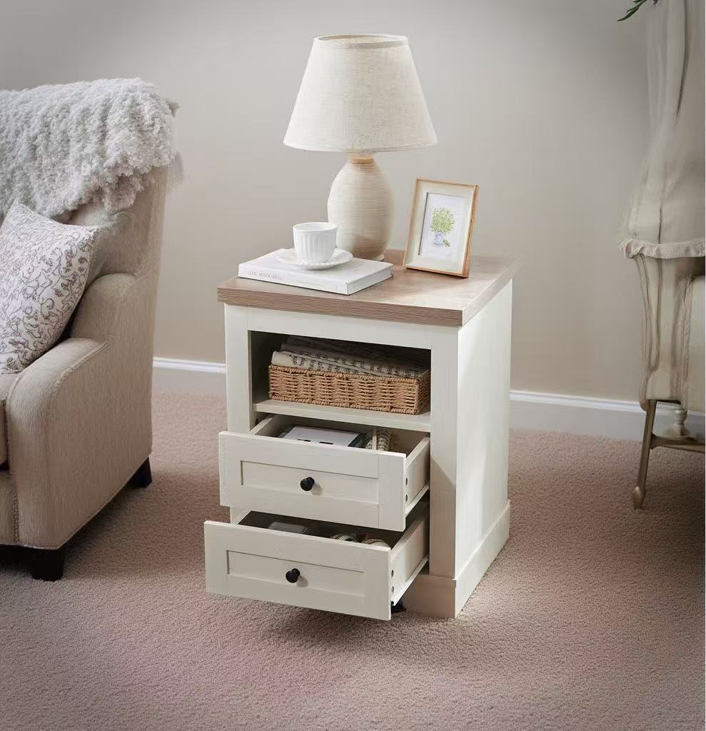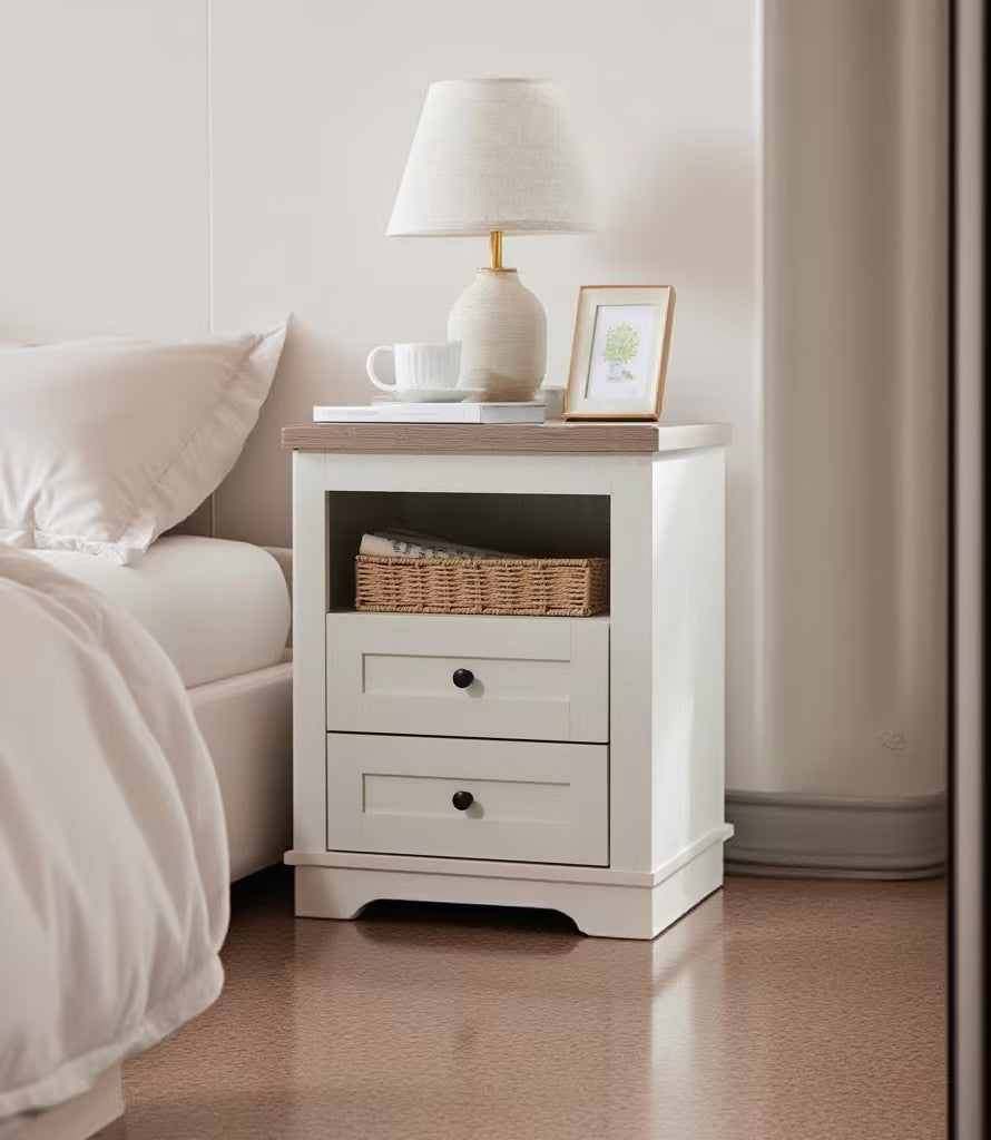 Farmhouse Nightstand , End Table, Side Table with 2 Drawers Storage Cabinet for Bedroom, Living Room, Farmhouse Design, Wood Rustic, Antique White