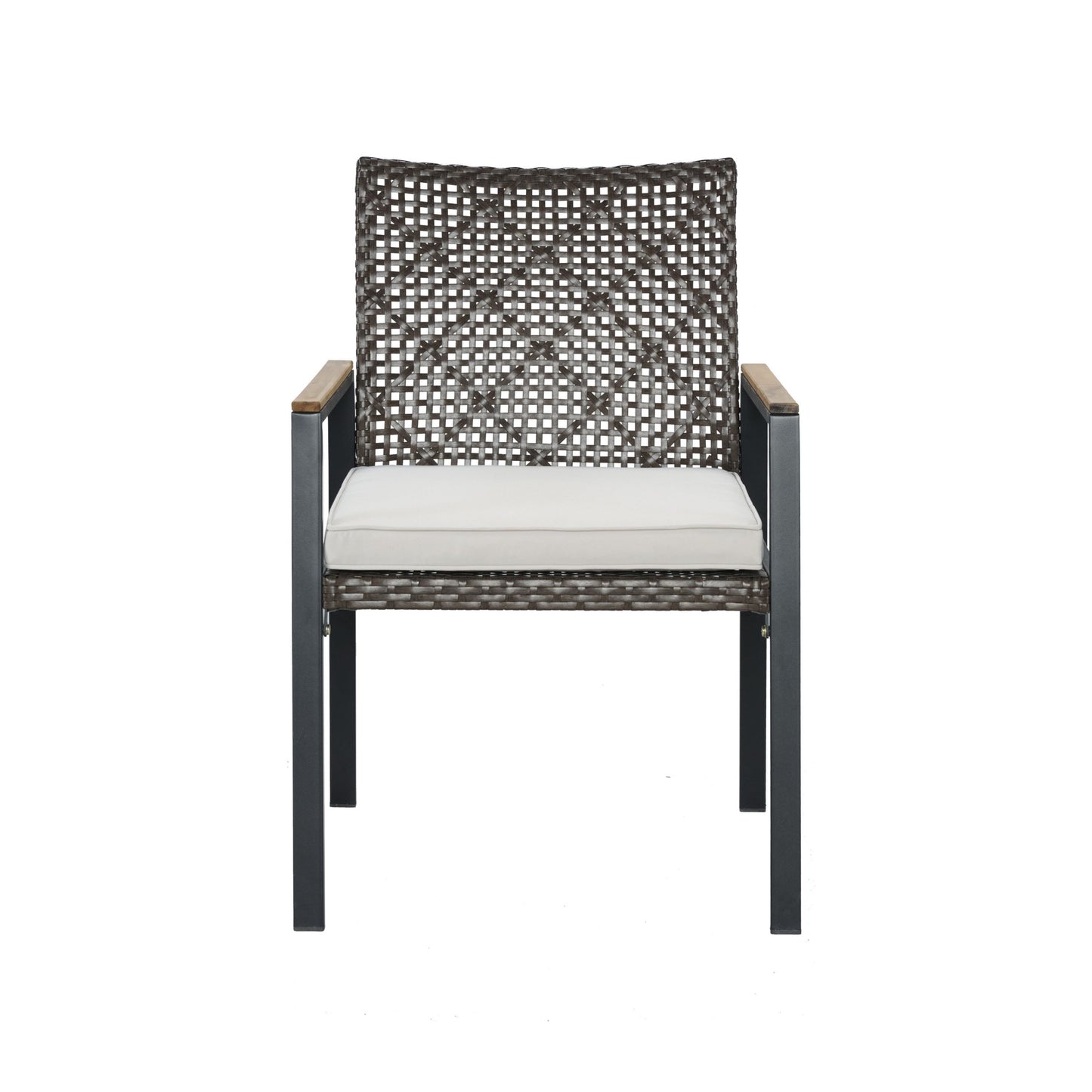 - STURDY CHAIRS: Its ergonomic design ensures optimal comfort, while the sturdy plastic rattan construction guarantees long-lasting use and a high weight capacity of up to 352 lbs. The armrests are covered with acacia wood, with 1.96 inch thick foam padding helping to increase your comfort when relaxing in an afternoon in your garden.