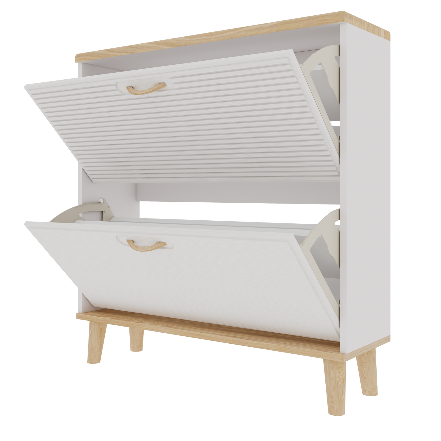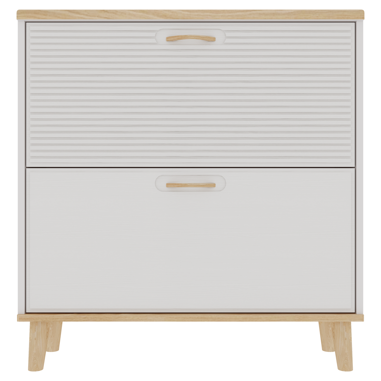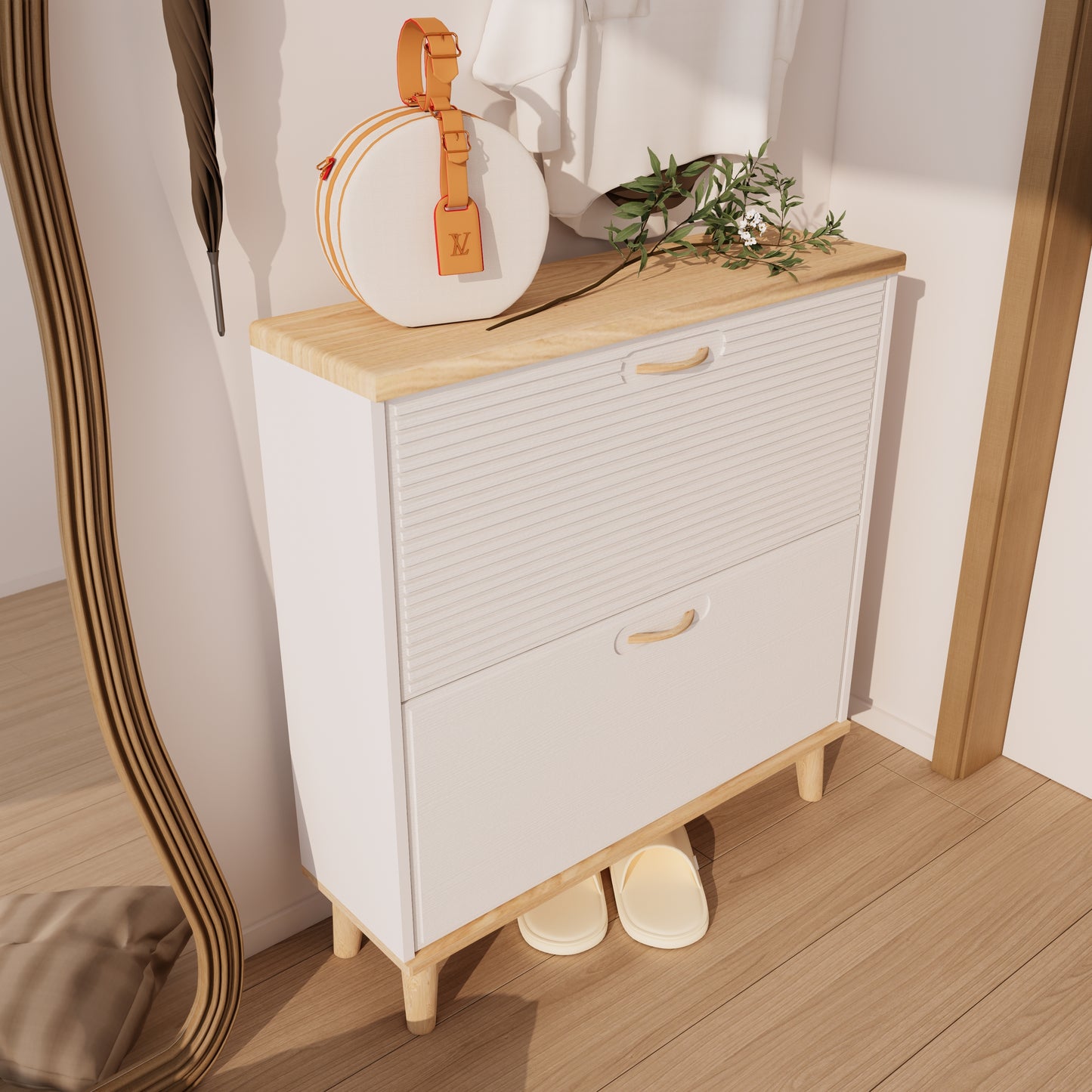 Shoes Storage Cabinet for Entryway,Narrow Shoe Rack Cabinet,Shoe Cabinet with 2 Flip Drawers,Freestanding Shoe Organizer with Natural Wood Legs,Slim Entryway Storage Organizer for 8-16 Pairs