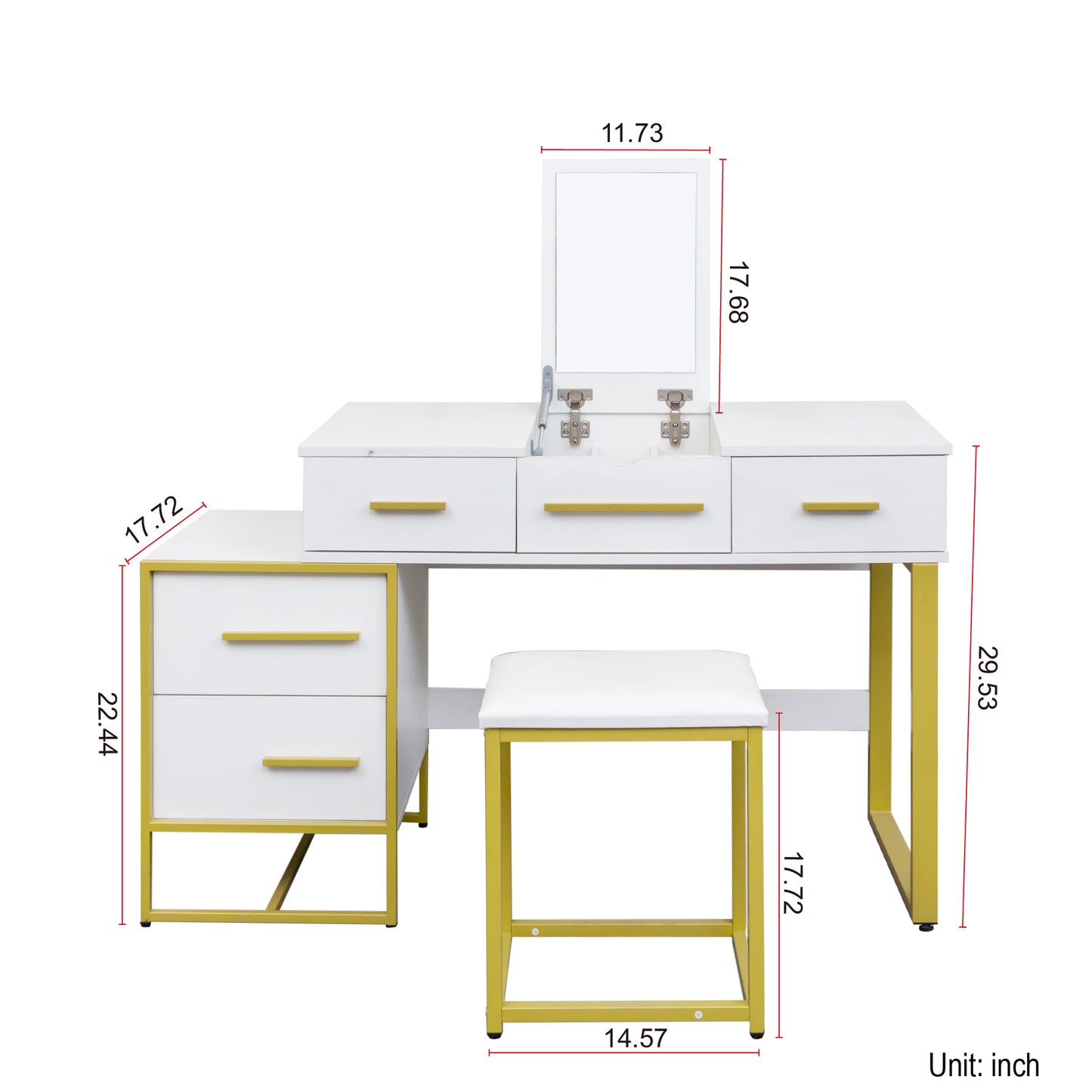 Makeup Vanity Set with Mirror , Dresser Table with Nightstand , with 4 Drawers