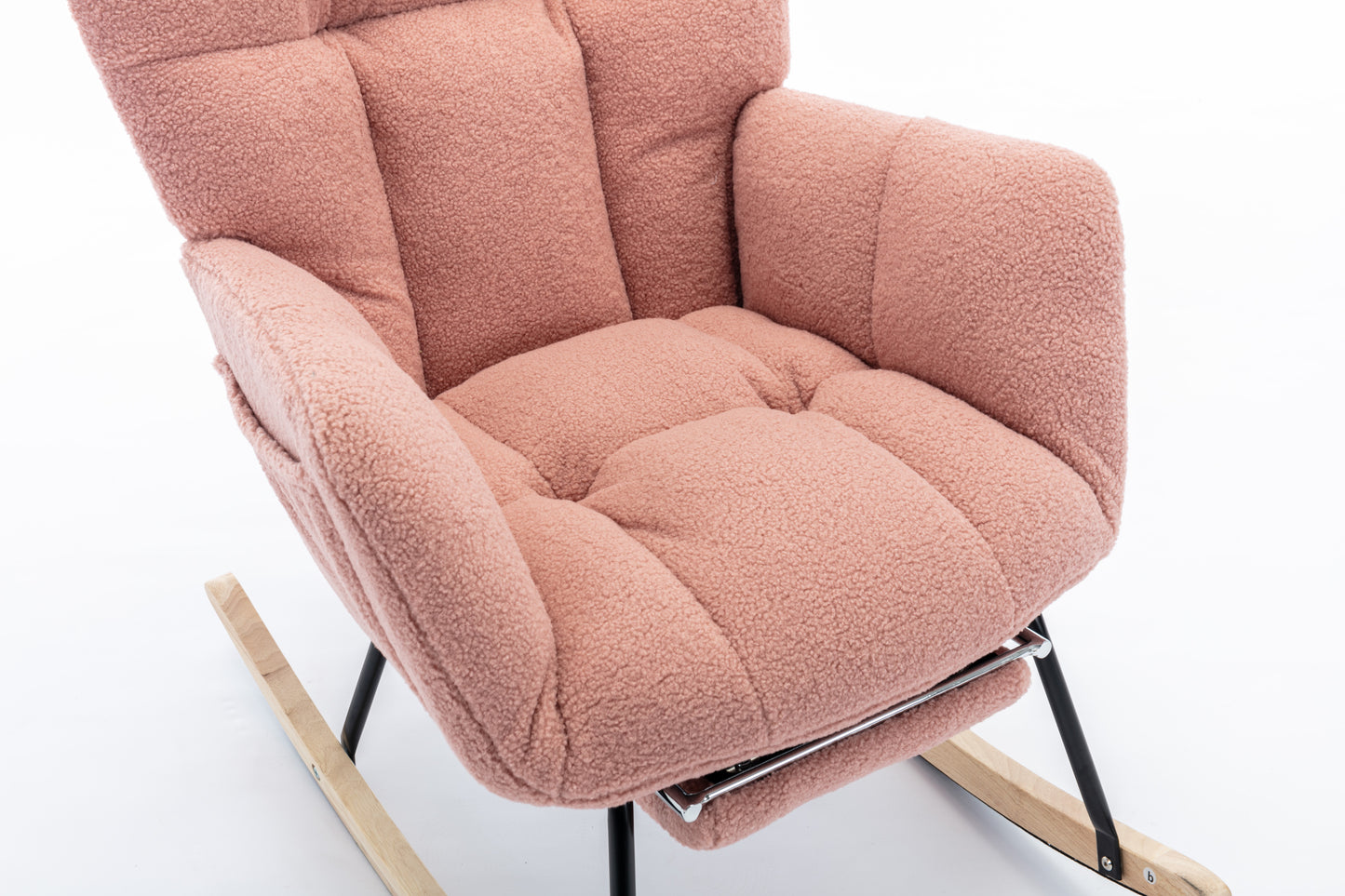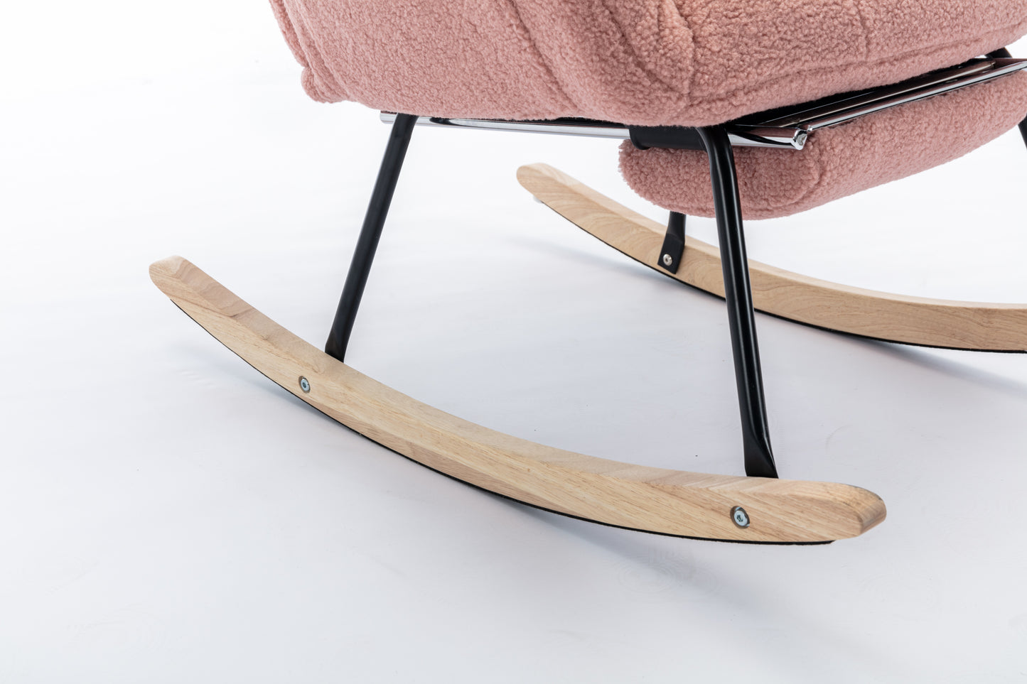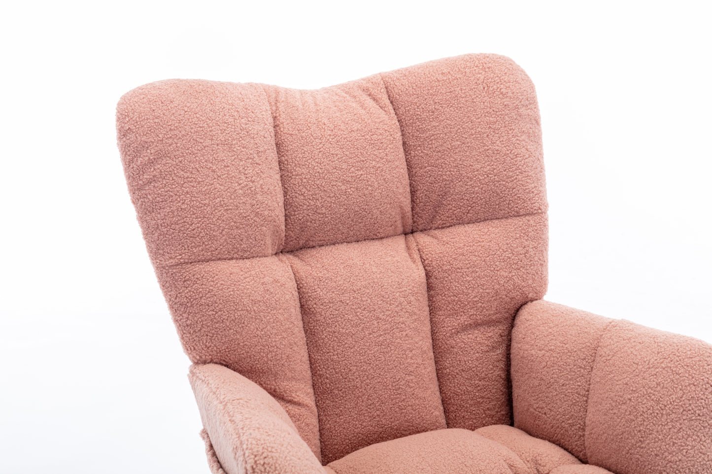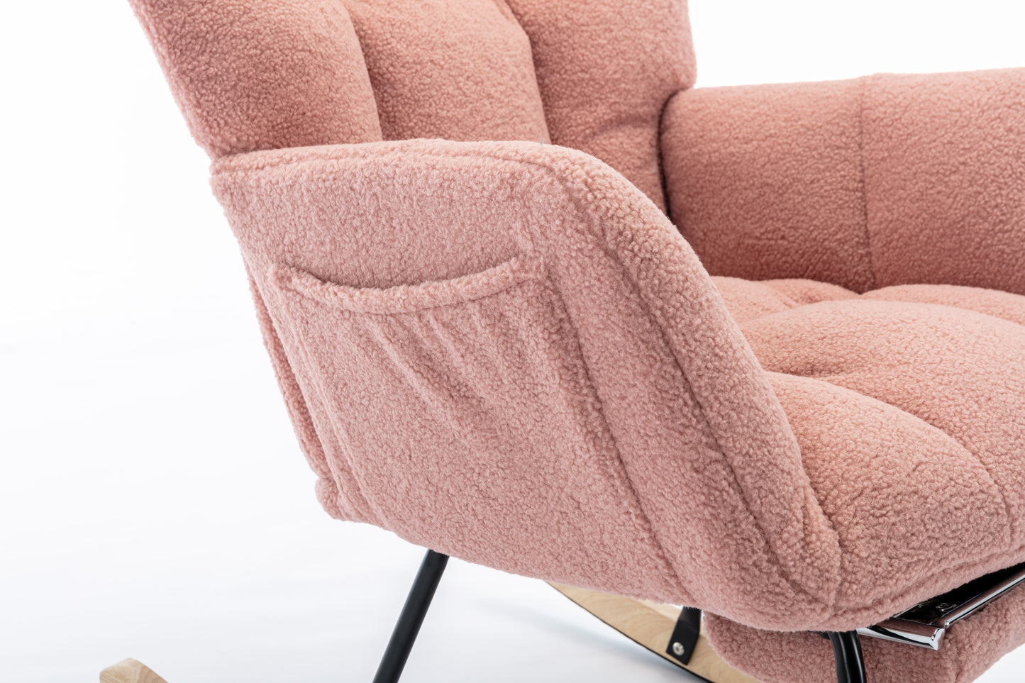 053-Teddy Fabric Rocking Chair With Adjustable Footrest,Pink