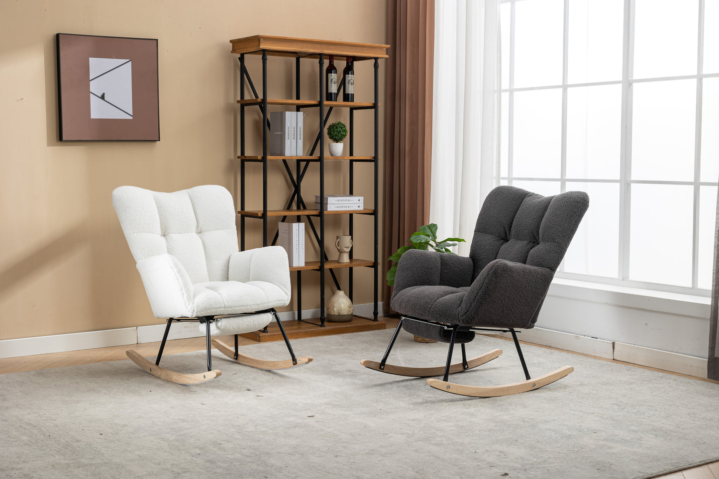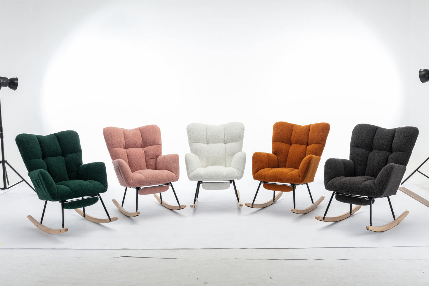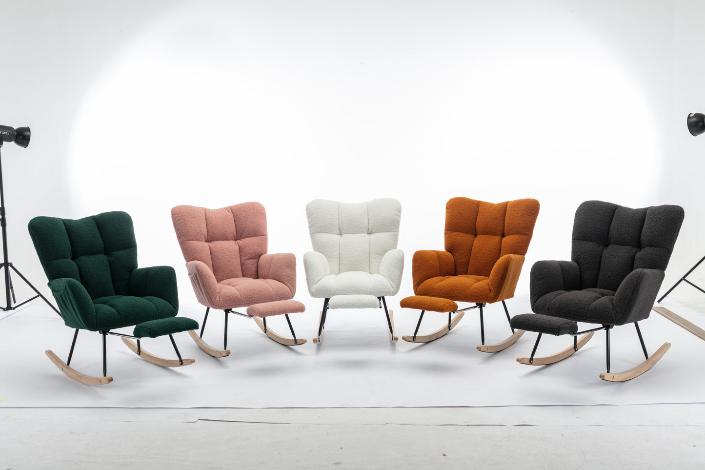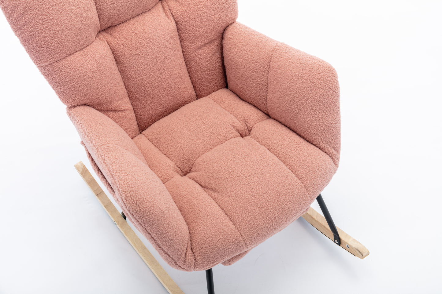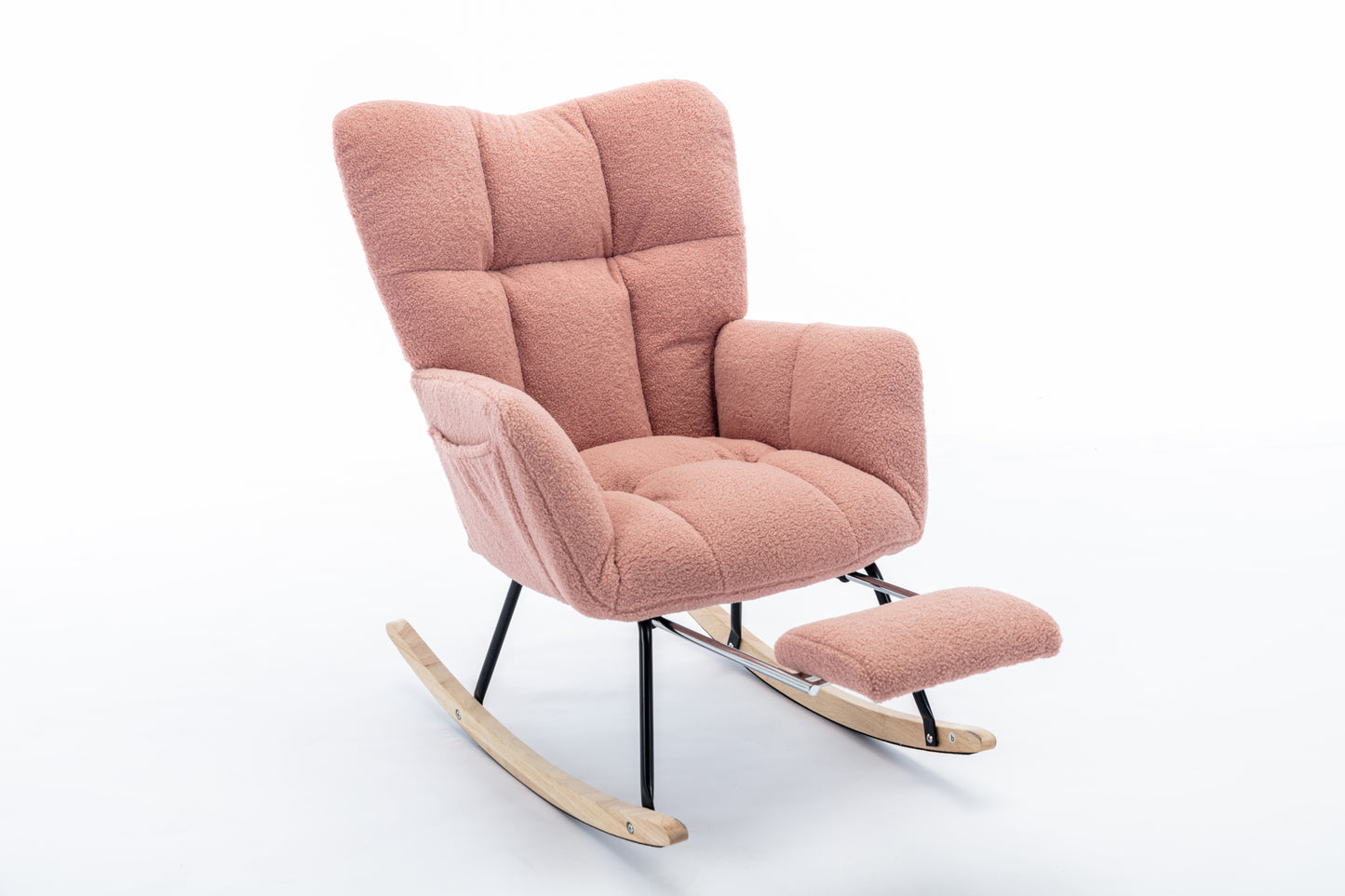 053-Teddy Fabric Rocking Chair With Adjustable Footrest,Pink