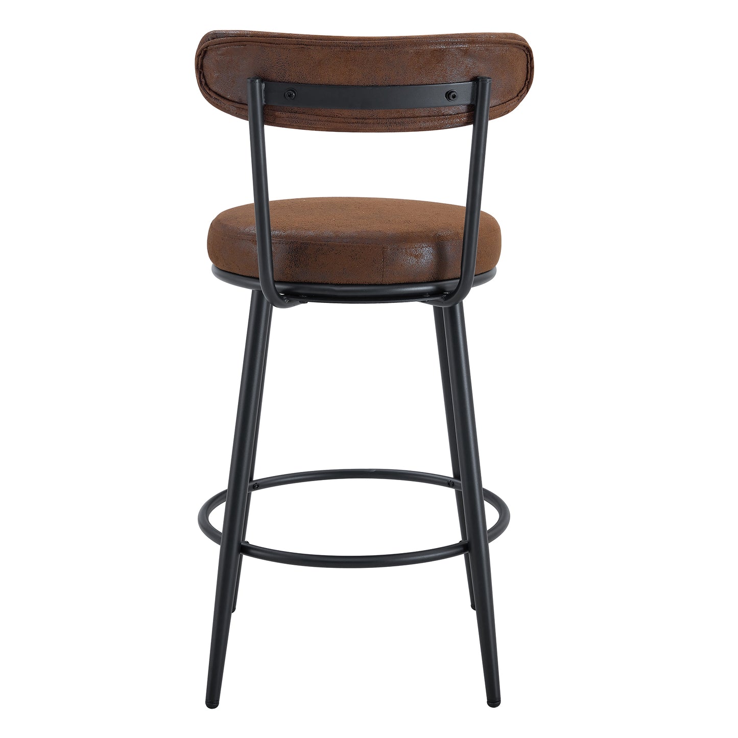 Fashionable Ergonomic Bar Chairs with Brown Technology Fabric Cushions, Black Metal Legs, 35.5 Inches.Set of 2.