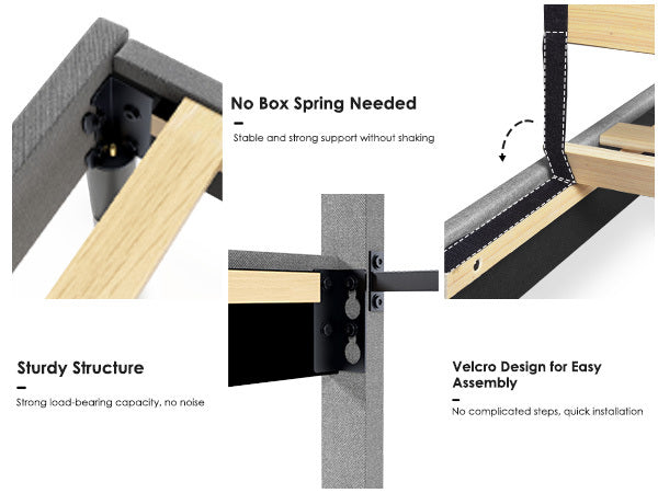 - No Box Spring Needed: Designed with solid wood slats and simple assembly; mattress does not slide; suitable for memory foam or spring mattresses without a box spring