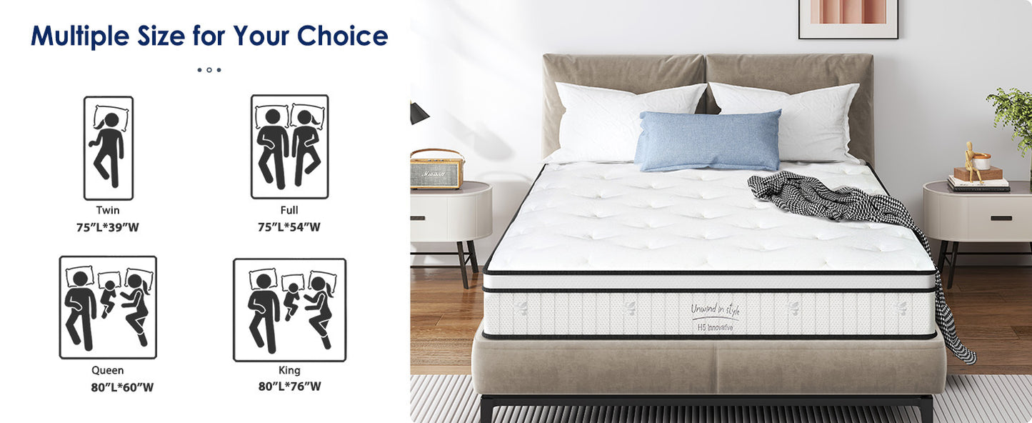 King Size Mattress,10 Inch Hybrid Mattress, Individually Pocketed Innerspring, Medium Firm