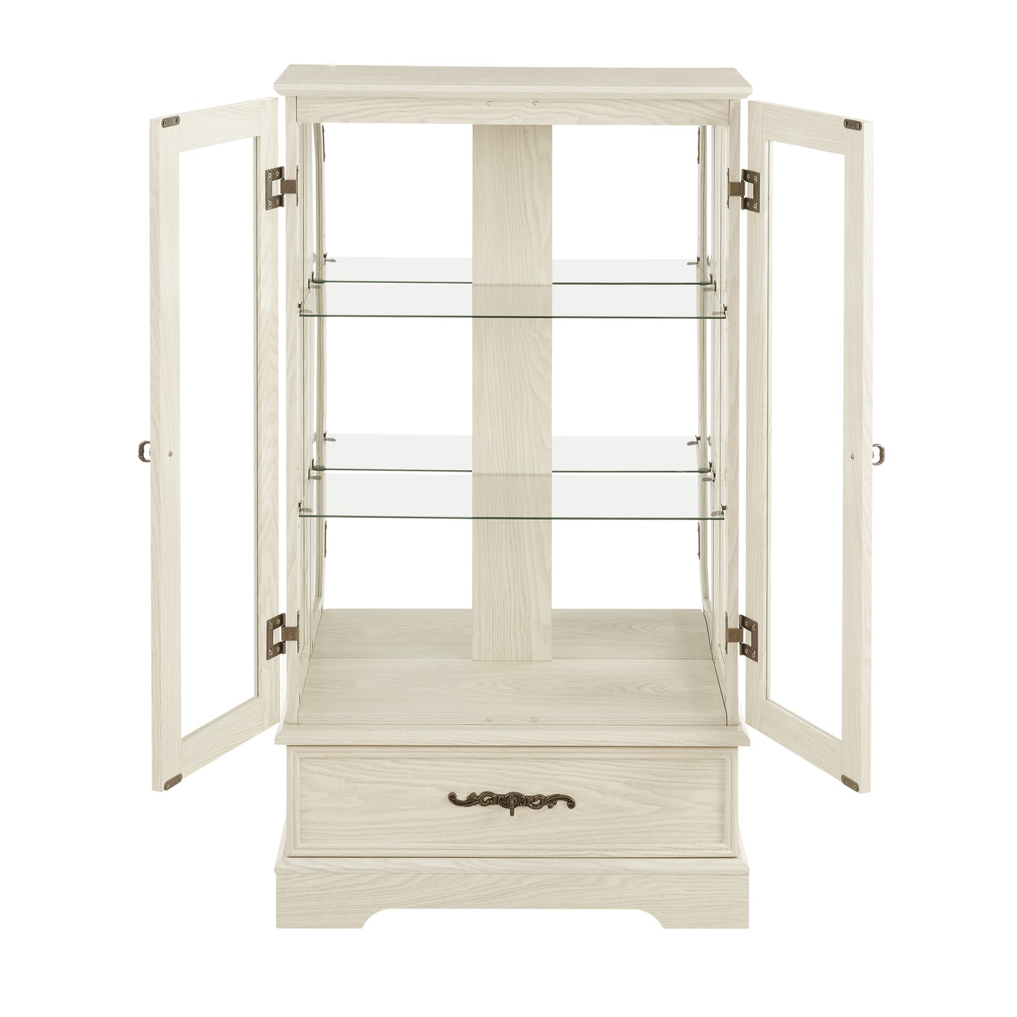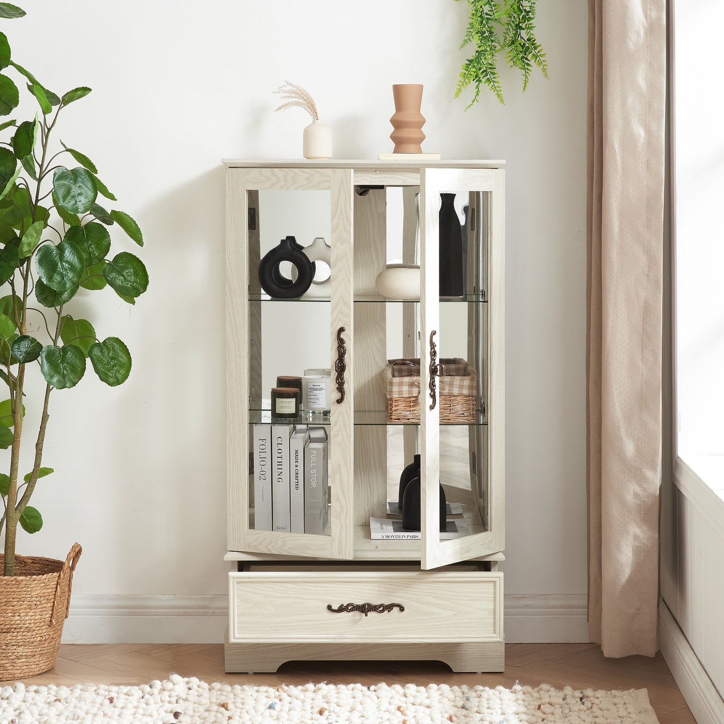 Glass Cabinet Lighted Glass Cabinet Curio Display Cabinet with Adjustable Glass Shelves 2 Doors and 1 drawer Cabinet Bulb Included White