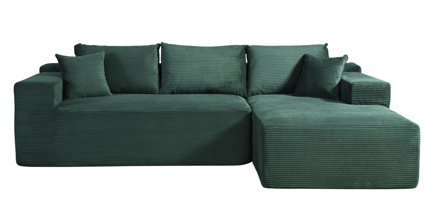 2-Piece Convertible Corduroy L-Shaped Sofa in a Box with Pillows, 3-Seater Modular Sectional Couch, Compressed Living Room Furniture, Dark Green (Right Facing)