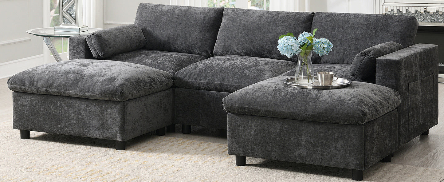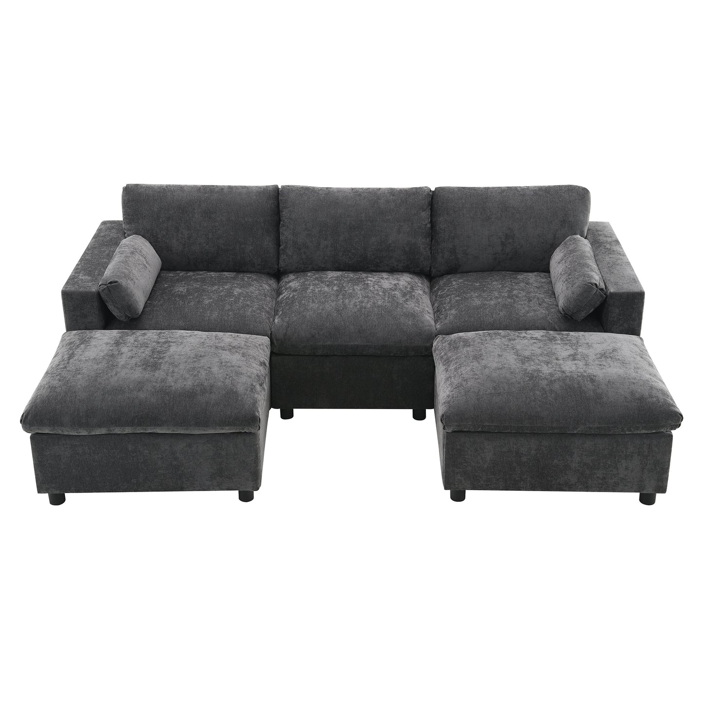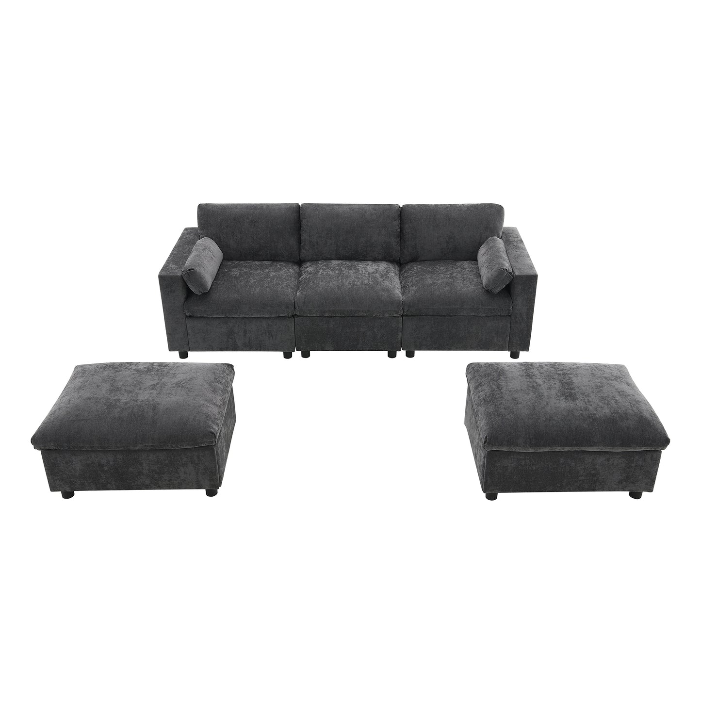 This sofa offers the perfect combination of functionality and comfort. The storage pockets on both sides provide convenient storage options for your belongings, while the removable ottomans offer flexibility in seating arrangements. The Chenille fabric ensures a cozy and comfortable seating experience, and the two free small throw pillows add an extra touch of comfort and style. With its practical features and stylish design, this sofa is a great choice for any living room.