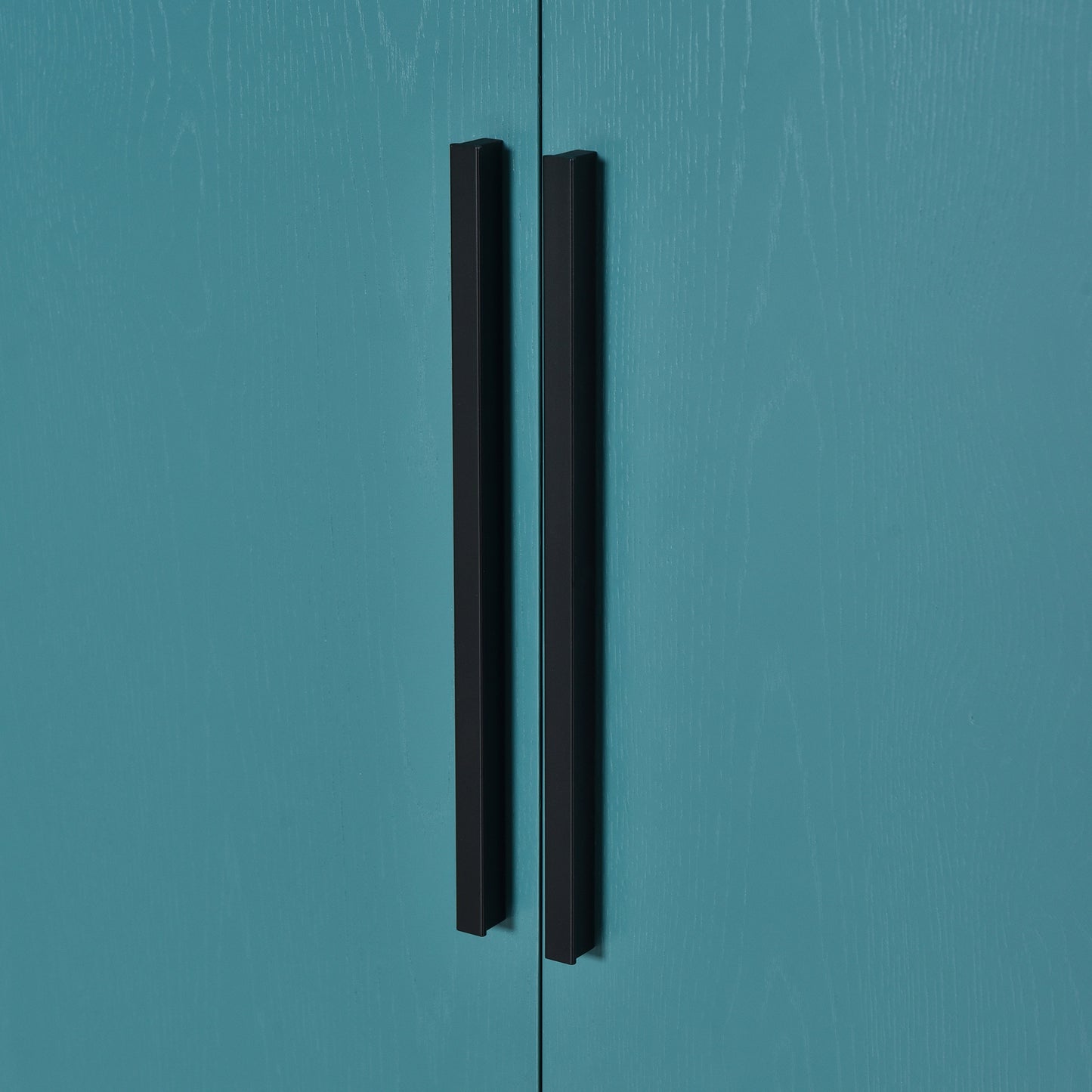 TREXM Sideboard Buffet Cabinet with Storage, Retro Sideboard Cabinet with Adjustable Shelves and Long Handles, 4-Door Wood Sideboard for Kitchen, Dining Room and Living Room (Antique Blue)