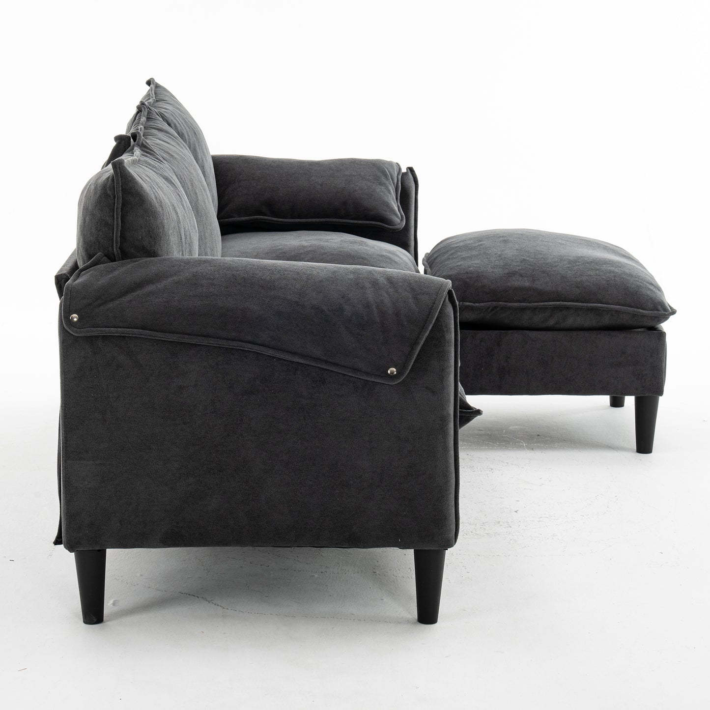 Convertible Combination Sofa Sofa L-Shaped Sofa with Footstools with Storage, Blue Sofa for Living Room, Living Room/Bedroom/Office/Small Space 3-Seater Combination Sofa-(Grey)