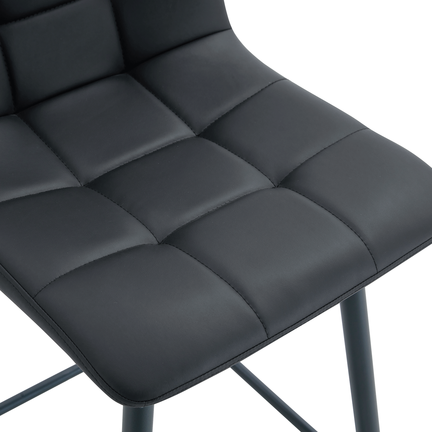 Modern Black PU Bar Chair Set with Checkered Design and Black Metal Legs, Multiple Colors Available
