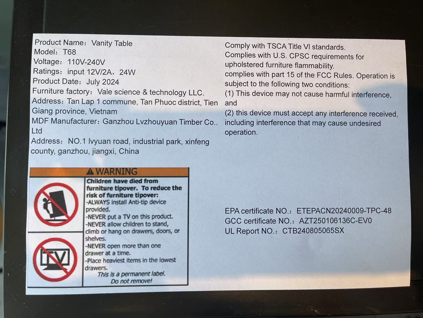 - [Precautions]: There are about 40 boards composing the dressing table. Assembly is a time-consuming task that is expected to take 2-3 hours. 2. There is no numerical lable on each board, so it may be challenging to identify each board according to the image in the installation manual. 3. There may be slight sawdust residue on the boards inside the packaging, and if there are very strict requirements for it, it may not be suitable for you.